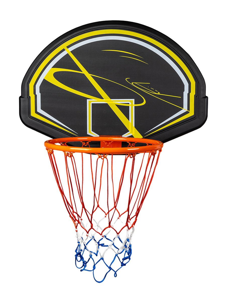 Basketball board 90 x 60cm with official basket with net. The basket has a diameter of 45 cm and comes with a net. Accessories - hooks for hanging + screws. Packed in a printed box