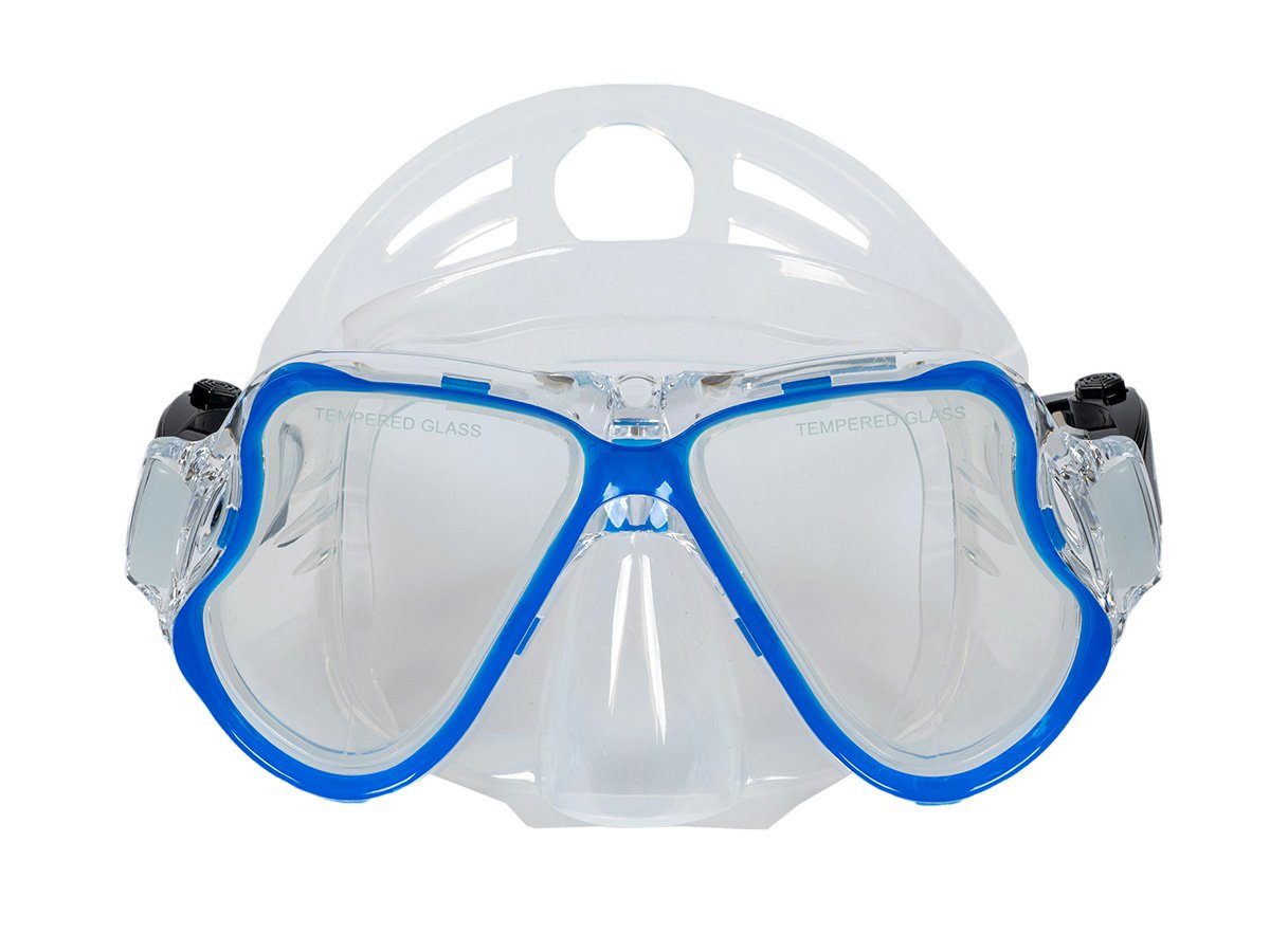 Snorkelling set Acra M6213, 3in1, blue-transparent Acra Sport snorkel set with adjustable fins, tempered glass mask with two visors, Dry Top silicone snorkel and travel gear bag.