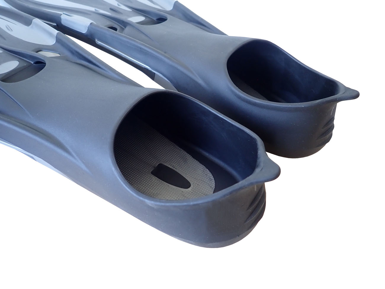 MIGRA fins, rubber boot, PE bag, size 39-40. Fins have rubber elastic reinforcements for better water flow. Available in blue, see second photo.