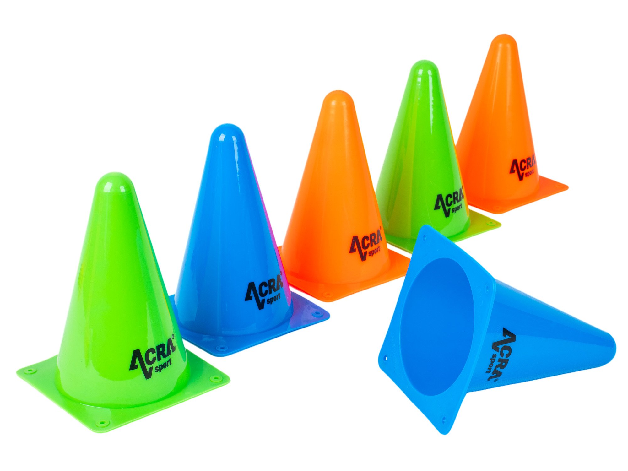 The Acra training cones form a set of six pieces, ideal for sports training and various movement activities.