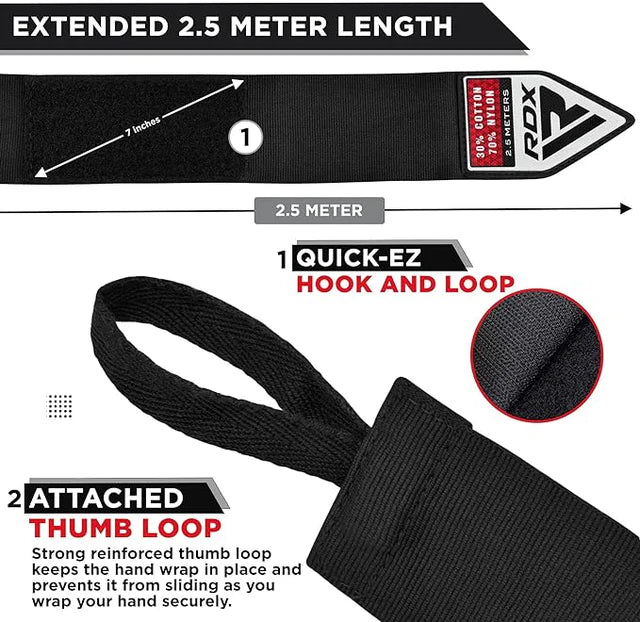 RDX throws only knock out combo deals! Enjoy 3 pairs of our highly durable and long-lasting hand-wraps that are made from polyester, cotton and woven carbon fiber. 4.
