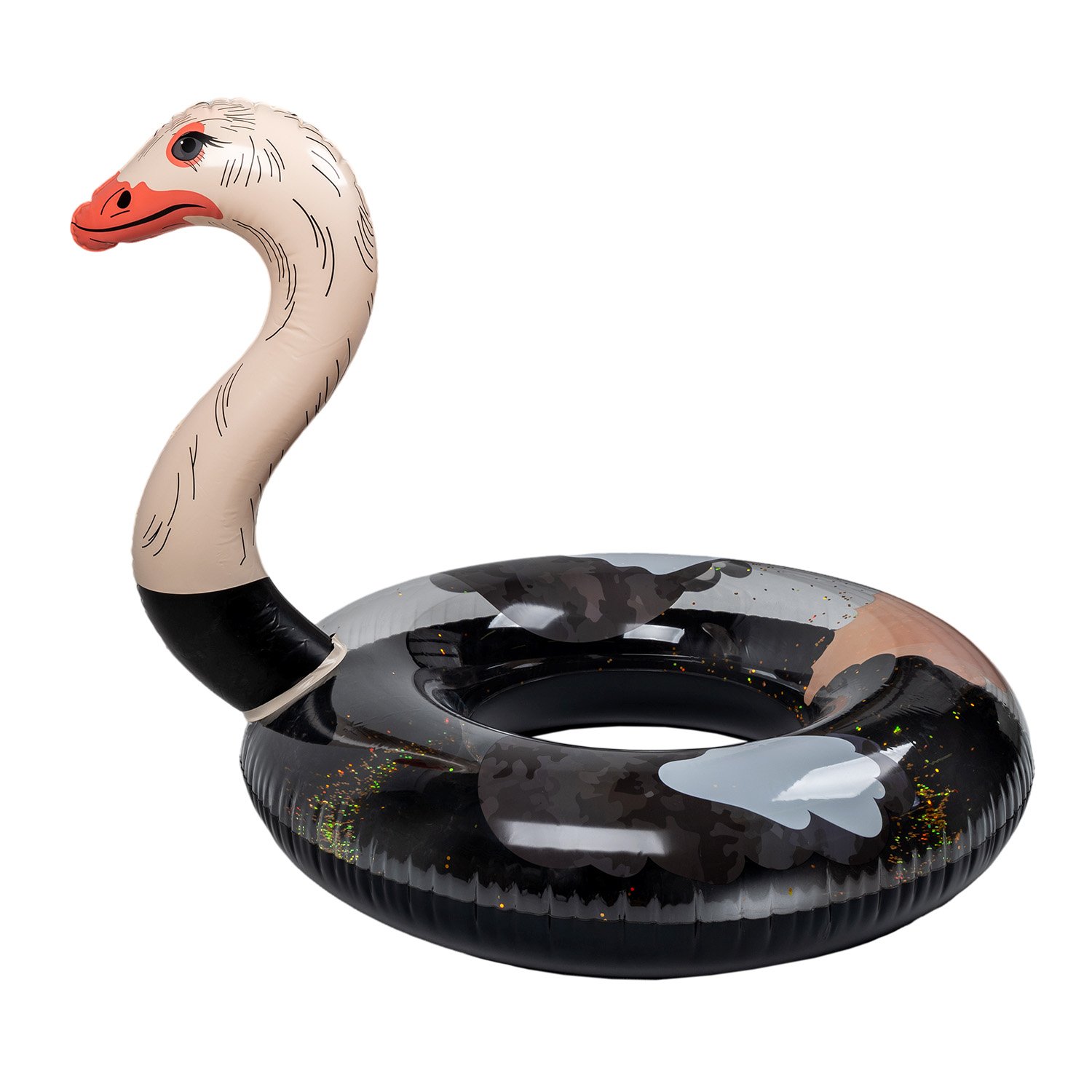 Enjoy summer fun with the original SUN CLUB Inflatable Ostrich Circle! The colorful and fun pattern will attract attention at any beach or poolside.