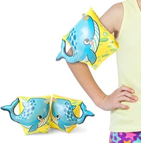 Are you looking for a fun and safe water tool for your kids? Then the Inflatable Swim Sleeves with a whale motif are perfect for you!
