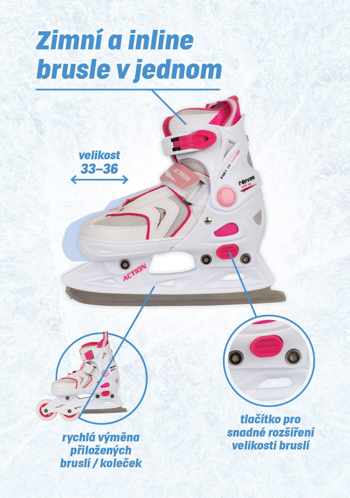Women's skates with interchangeable chassis 2 in 1 are a versatile line of skates for year-round use.