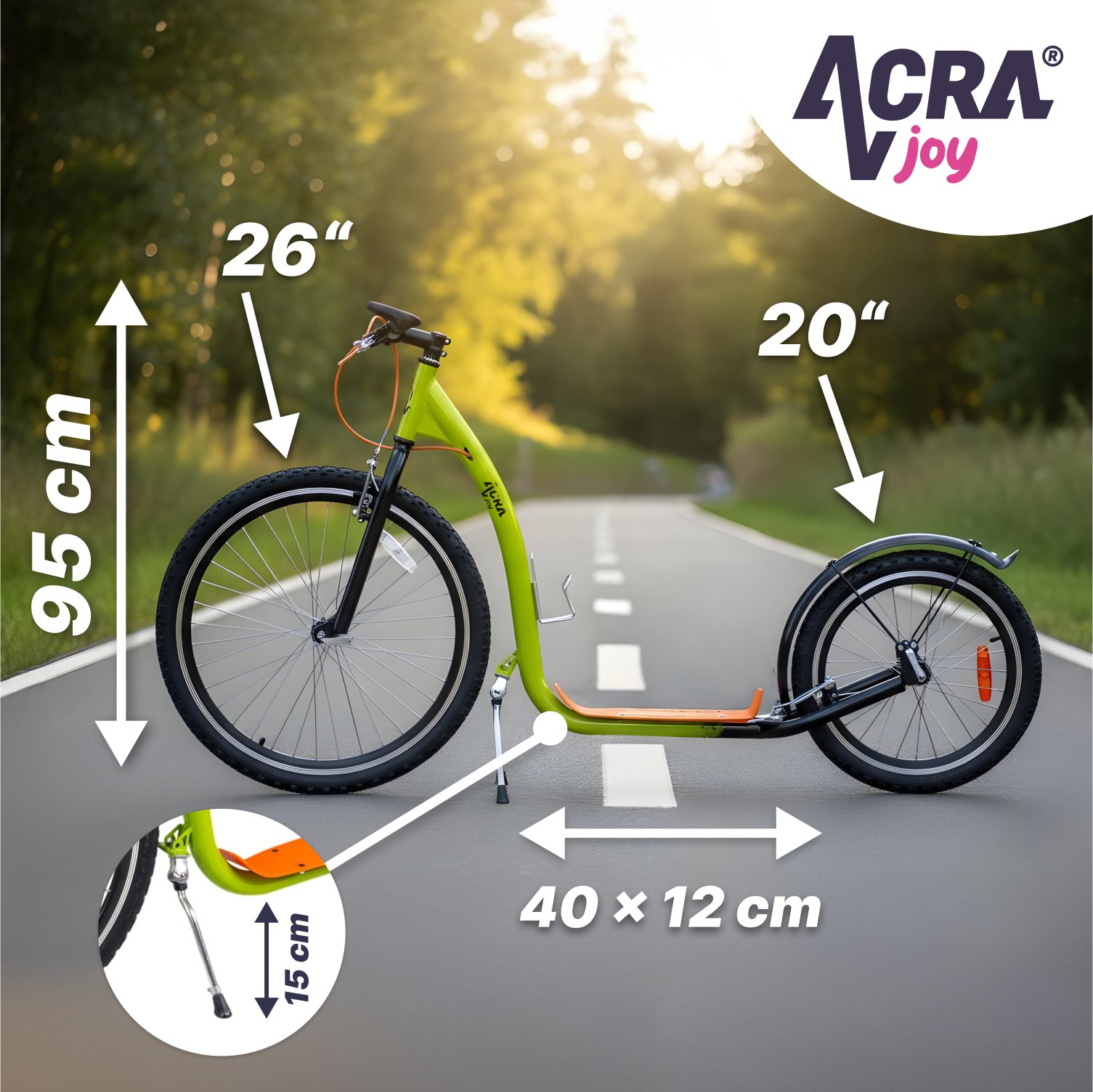Scooter Acra Joy Racer Scooter Acra Joy Racer is fast, sporty, ideal for riding on the road, bike path and in smaller terrain.
