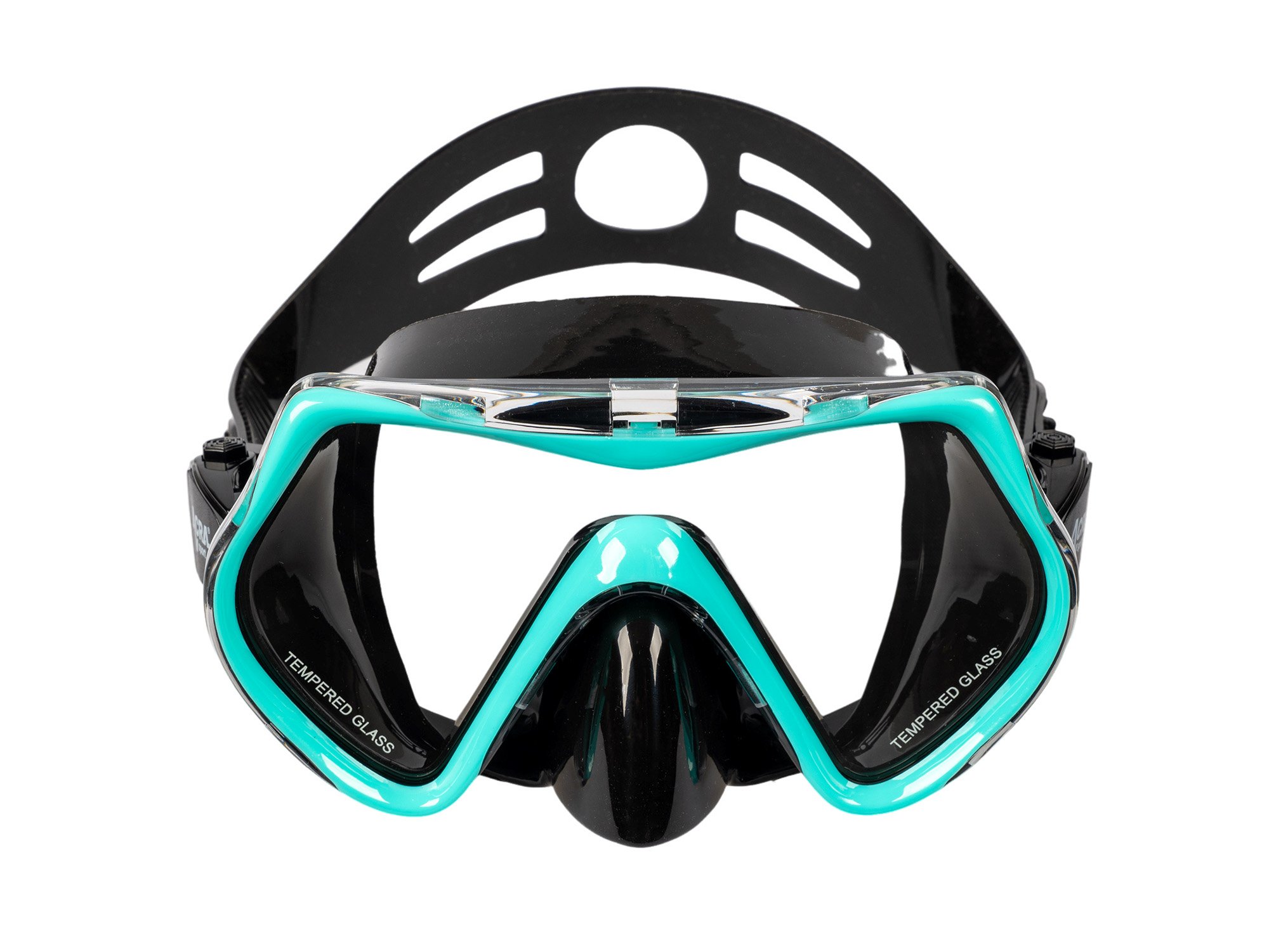 Acra Snorkelling Mask AEONE full face with GOPRO mount. Panoramic View - The snorkeling mask features clear flat lenses that offer a 180-degree panoramic view.