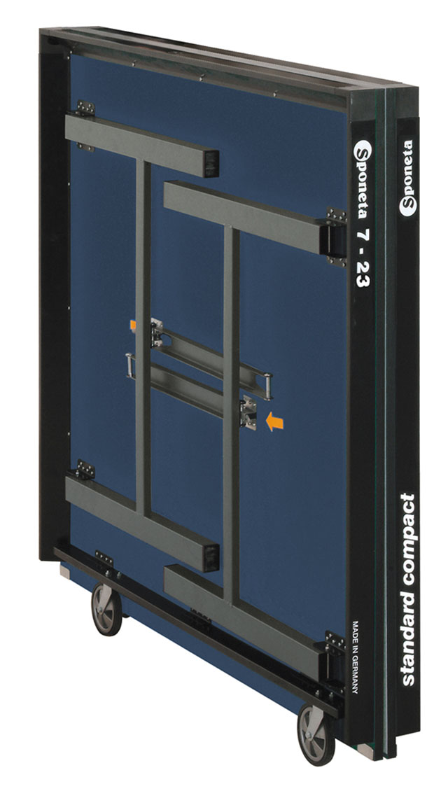 The Sponeta S7-62i ping pong table is a high quality table designed for racing purposes. It has a specially ground surface on a 25 mm thick board.