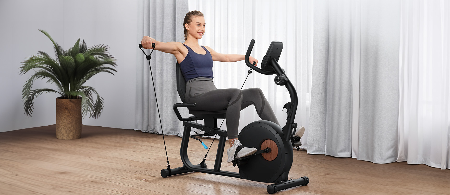 Ganzkörpertraining - Stärkt Arme und Beine mit Widerstandsbändern und einer radähnlichen Bewegung für ein effektives Ganzkörpertraining.
