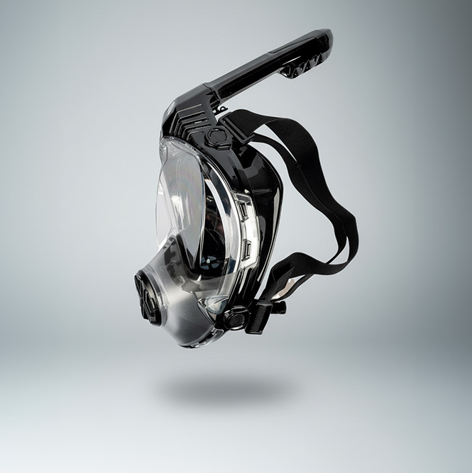 Acra Schnorchelmaske AEONE Vollgesicht mit GOPRO Halterung. Panoramablick - Die Schnorchelmaske verfügt über klare, flache Gläser, die einen 180-Grad-Panoramablick bieten.