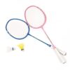 2 Badmintonschläger: Die Schläger sind in attraktiven Farben gestaltet - einer mit dominanten rosa und weißen Elementen, der andere in blau und weiß.2 Badmintonbälle: Das Set enthält zwei strapazierfähige Bälle, die sofort spielbereit sind.Transparente Verpackung/Koffer: Zur einfachen Aufbewahrung und zum bequemen Transport des gesamten Sets.