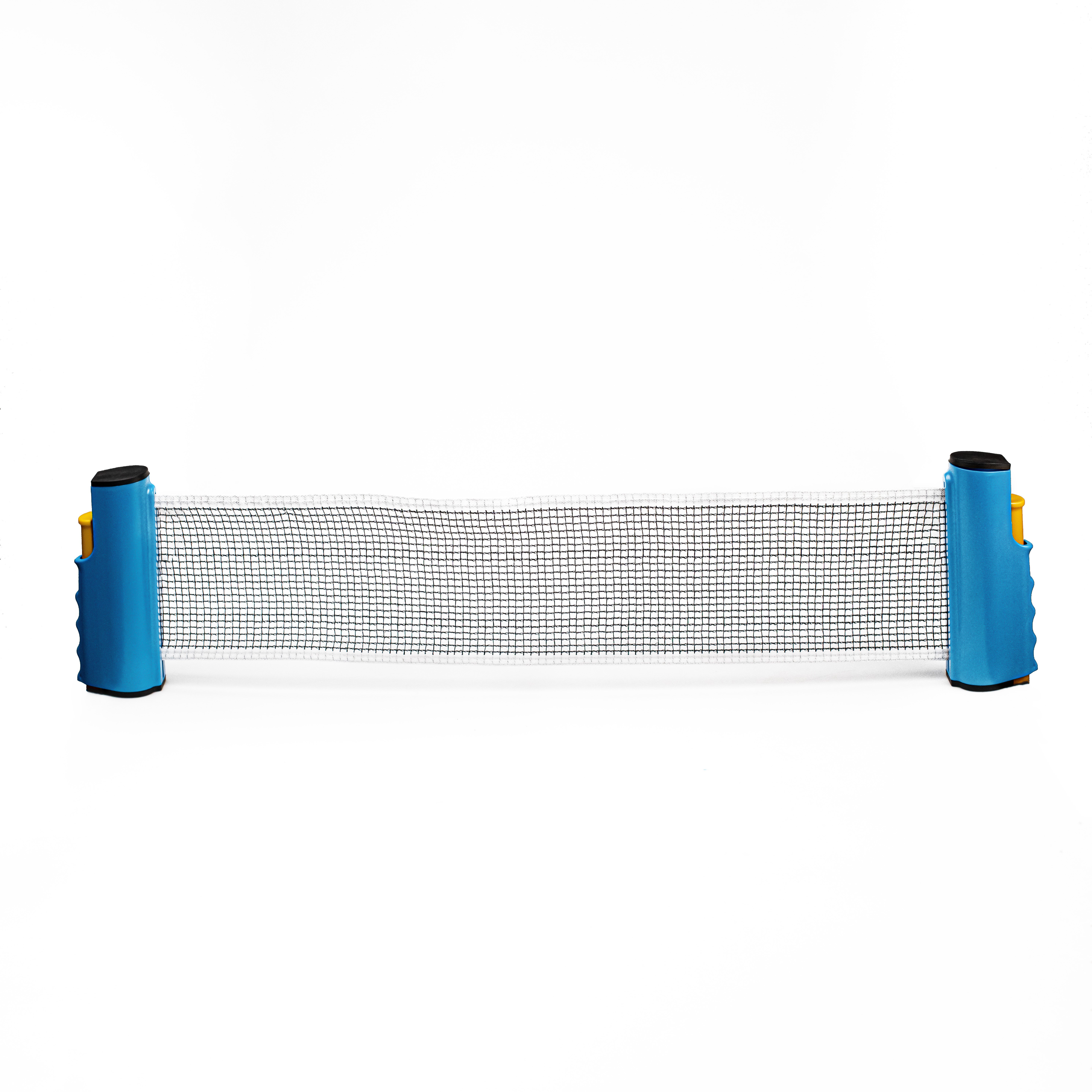 2 Tischtennisschläger: Ein Schläger mit rotem Gummi und einer mit schwarzem Gummi.3 Tischtennisbälle: Die Bälle sind aus haltbarem ABS-Material gefertigt.Aufrollbares Netz: Praktisches aufrollbares Netz mit integrierten Pfosten ermöglicht eine schnelle und einfache Befestigung an den meisten Tischen (max. Tischbreite in der Regel ca. 150-180 cm).Praktische Tragetasche: Zur bequemen Aufbewahrung und zum Transport des gesamten Sets.