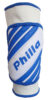 Anatomische Volleyball-Knieschoner, Größe S, wir liefern in der Farbkombination weiß-blau. Blaue Querstreifen verhindern ein Ausrutschen auf dem Boden.