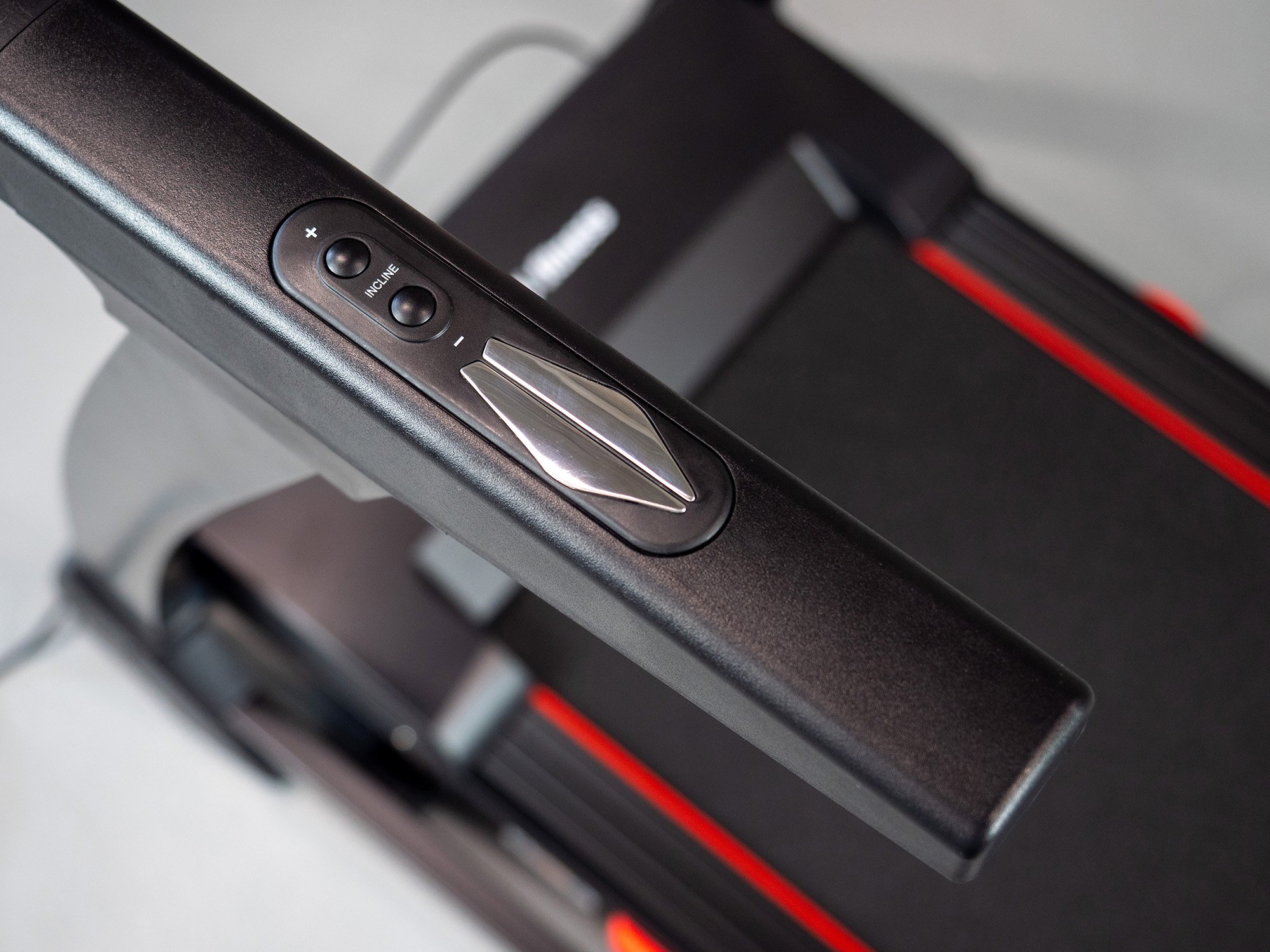 Das Laufband verfügt außerdem über eine Sicherheitsbremse, mit der man bei Bedarf sofort anhalten kann. Die Steigung des Gürtels kann elektrisch von 0-15% direkt an den Griffen eingestellt werden, was eine sanfte Veränderung während des Laufs ermöglicht.