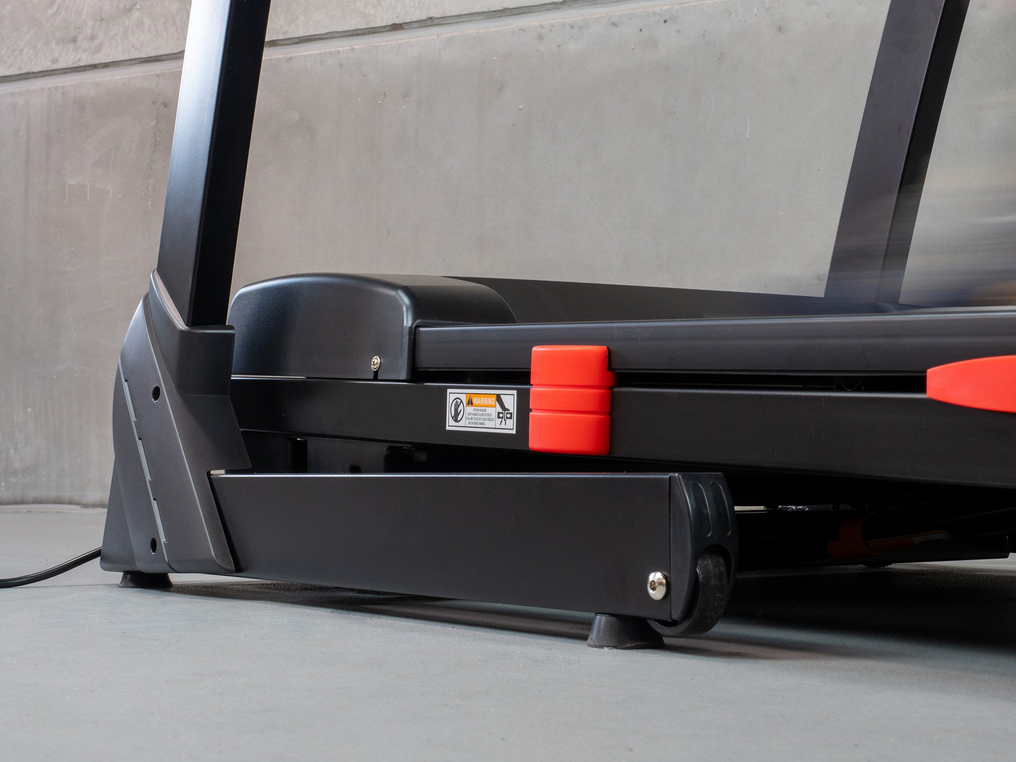 Das LCD-Display zeigt wichtige Informationen wie Zeit, Kalorienverbrauch, Geschwindigkeit, Distanz, Herzfrequenz, Steigungswinkel, Körperfettanteil und mehr an, die in der Bedienungsanleitung aufgelistet sind. Das Laufband kann auch mit den beliebten Lauf-Apps Kinomap und Zwift verbunden werden (kostenpflichtig nach 14 Tagen, herunterladbar bei Google Play und Apple Store)