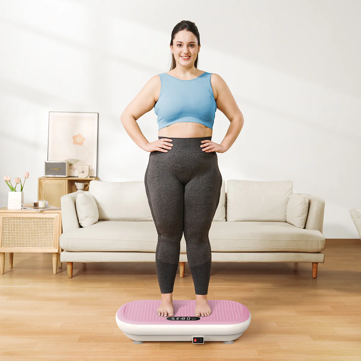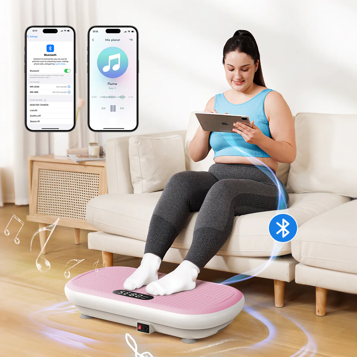 Merach - MERACH 2440 vibrační plošina, nosnost 200 kg, Bluetooth a 10 režimů, růžová