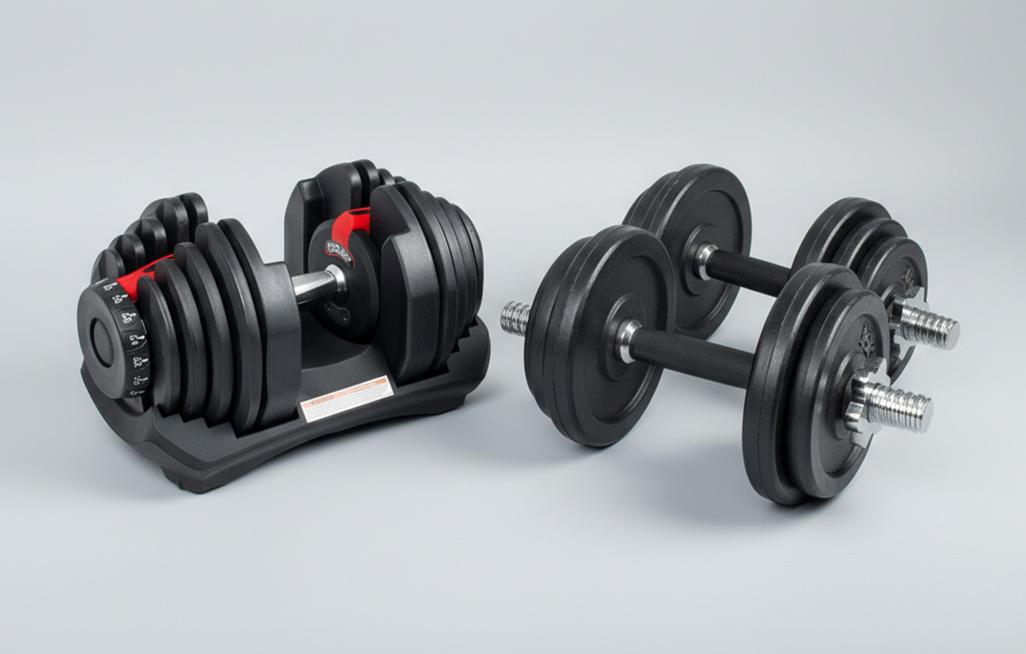 β When you are hesitating between two solutions: adjustable ones win in terms of space, fixed dumbbells are the fastest option: no adjustment required.