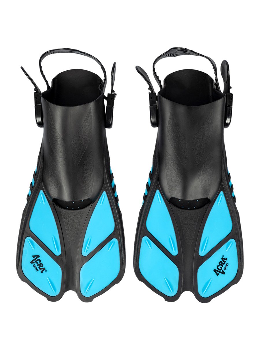 Flexible Adjustable Diving Fins: Longer, lightweight and responsive blade ensure a smooth, easy yet powerful bounce. The fins with open heel and adjustable strap, leg pocket and strap are made of durable rubber to ensure a comfortable fit. The Acra Sport fin provides excellent traction with moderate kicking power, perfect for your snorkeling or diving activities.