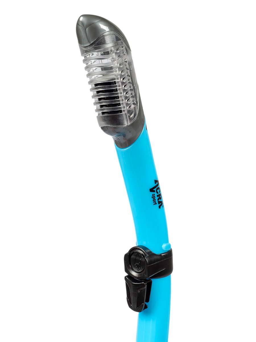 Dry Top Snorkel for undisturbed breathing: High quality snorkel with Dry Top valve that seals the breathing tube when submerged. The Dry Top snorkel prevents water from entering the breathing tube, the ergonomic silicone mouthpiece is comfortable and durable. The bottom flush valve allows water to be quickly drained so you can enjoy easy and undisturbed breathing while diving underwater.