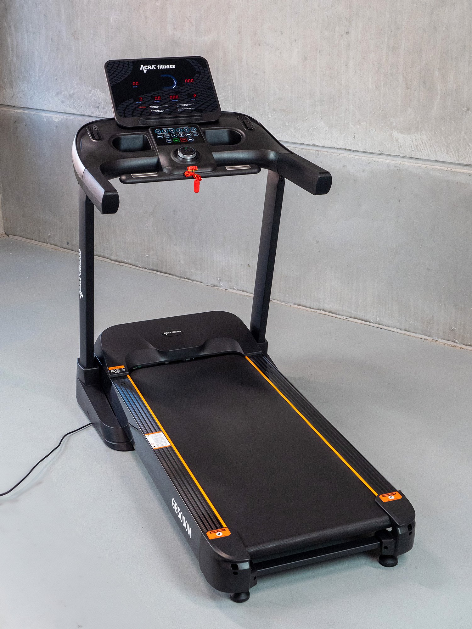 The Acra GB5000N premium treadmill offers uncompromising performance and luxurious design. With a 52cm wide belt, 7" interactive display and a powerful 4.5 HP motor you will enjoy a smooth and comfortable run. Electric lift up to 20 degrees and hydraulic folding ensure maximum workout variability. The ideal choice for demanding users looking for the best.