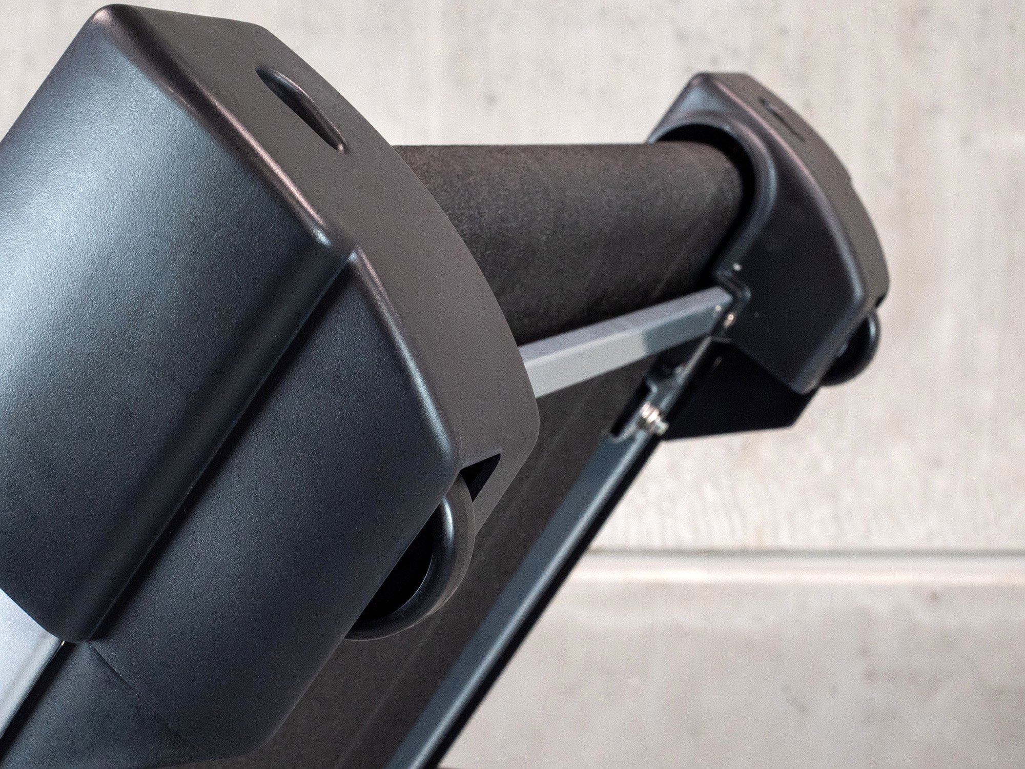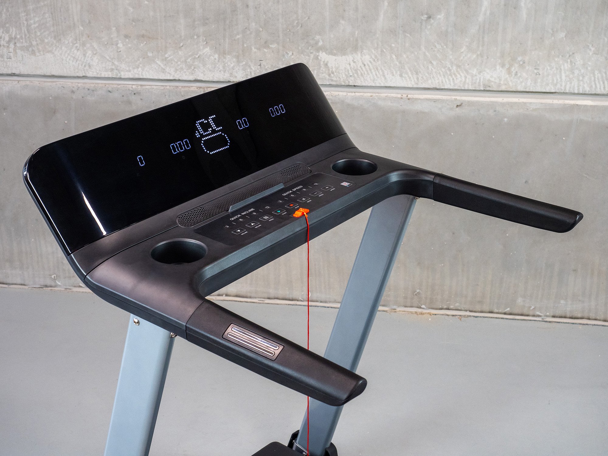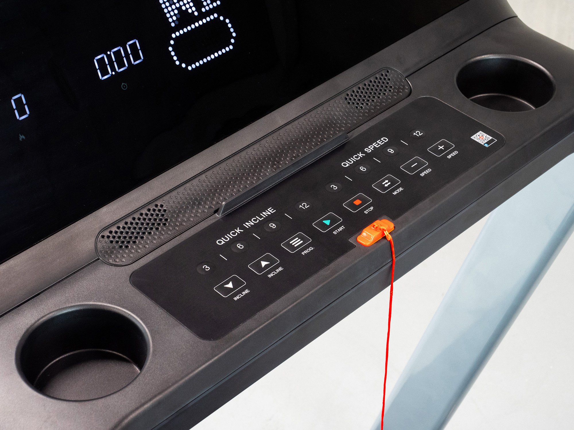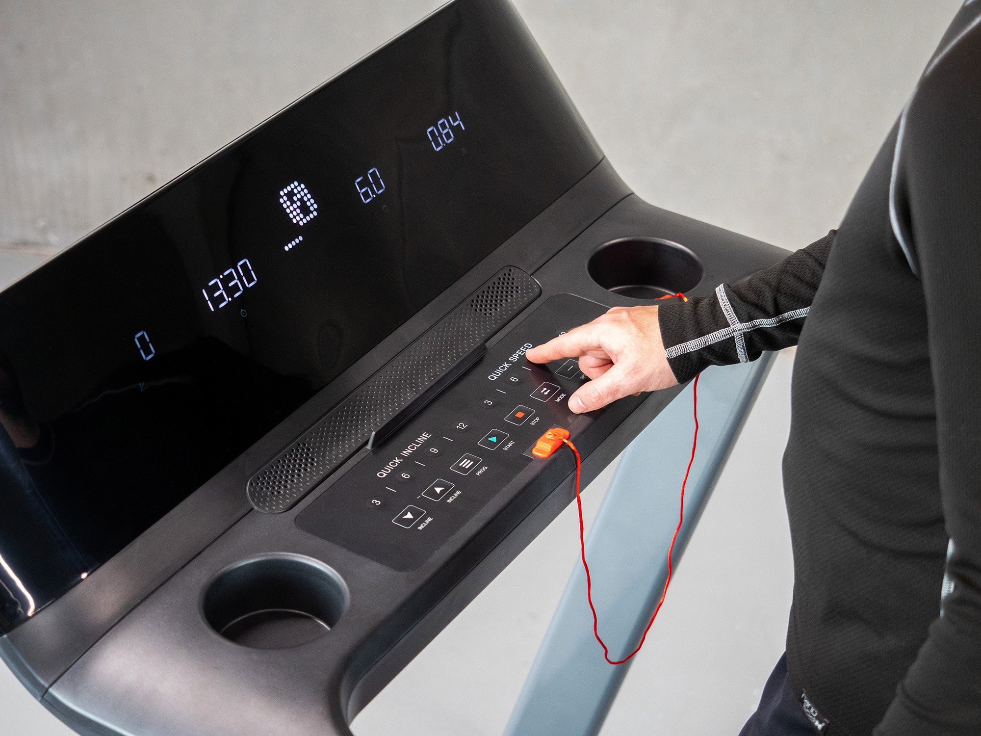 The belt also features a safety speed brake that allows you to stop immediately if needed. The incline of the belt can be electrically adjusted from 0-15% directly from the screen, allowing for smooth changes while running.