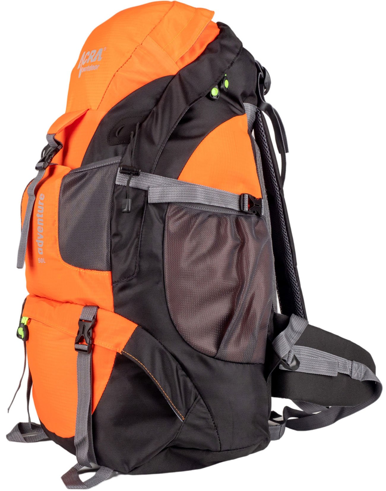 The high-quality Adventure 50 hiking backpack with a lightweight load-bearing structure and a reinforced, well-ventilated back side is suitable for longer hiking trips and mountain hikes. With its compactness and many different pockets and straps, it is very practical to use.