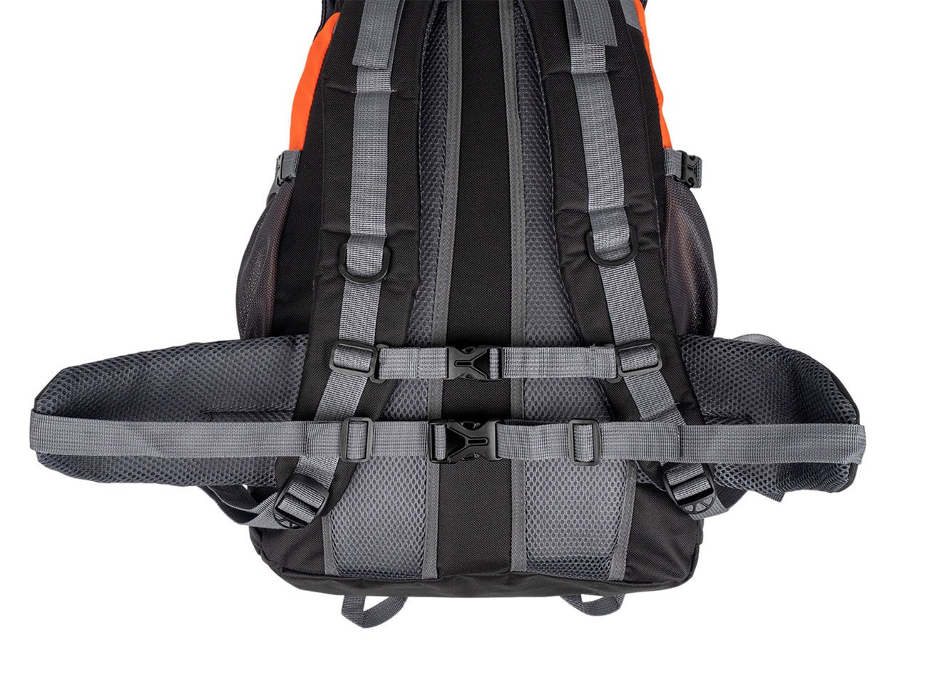 Features include a chest and waist belt with a maximum circumference of .... cm, 8 clamping straps for various items (trekking poles, helmet...) and also straps to reduce the volume in case of not using it. There are also practical loops on the bag.