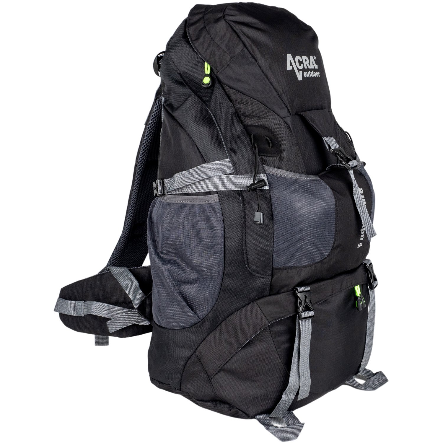 The high-quality Adventure 50 hiking backpack with a lightweight support structure and a reinforced, well-ventilated back side is suitable for longer hiking trips and mountain hikes. With its compactness, many different pockets and straps, it is very practical to use. The backpack has 1 main chamber with top entry with double-sided zippers, a lower chamber with zippered front opening for separating e.g. shoes from other items, 2 large mesh pockets with drawstring on the sides of the backpack, one front smaller pocket with buckle closure. There is an additional pocket with zipped storage space in the closing top lid of the backpack. The backpack also has an internal pocket at the bottom for shoes or dirty items. This is separately accessible from the front of the backpack. The pocket is equipped with a zipper with overlap. The backpack is also equipped with an internal pocket for smaller items with a spring at the top , which partially closes the pocket the backpack has height-adjustable wider padded anatomical shoulder straps and chest and waist adjustable belts with buckles for better fixation of the backpack on the body during longer travel or running and for overall comfort when wearing the backpack the backpack's upper material is OXFORD 210D with water-repellent treatment - blue parts, Oxford 400D is on the black parts of the backpack, internal pockets and compartments are made of 190T PES Equipment includes a chest and waist belt with a maximum circumference of 130 cm, 4 clamping straps for various items (trekking poles, helmet...) and also two straps on the bottom of the backpack to reduce the volume in case it is not used. There are also practical loops on the bag, and the sides of the bag have reinforcements to keep the shape. The reinforced bottom and back of the backpack is made of OXFORD 400D material Facilities on the front of the backpack include reinforcing strips, the print on the backpack is made of reflective font color Dimension: 42x21x61 cm - dimensions are given for orientation in plan view. The spatial dimension after filling the backpack may partially change according to the filling inside color black the backpack includes a drawstring rain cover made of 210T waterproof PES to protect the backpack from moisture volume: 50 l weight: 720 g.