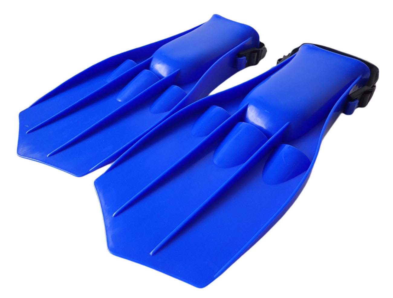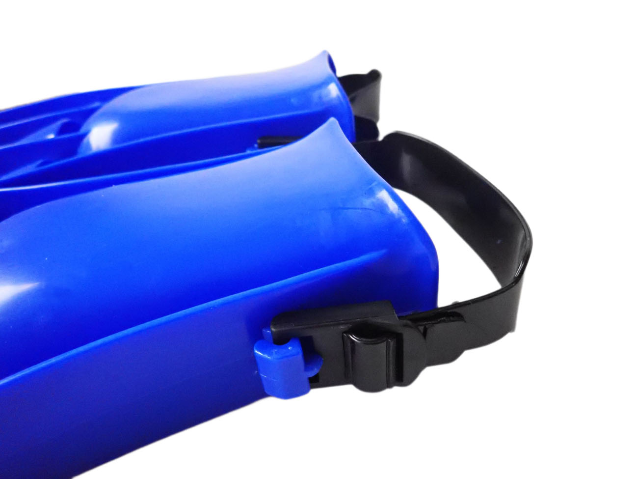 Bestway flippers large size 7 - 11 (41 - 46), universal size of flippers, leg size is regulated by a tightening strap. Durable packaging, different colours. Available in blue.