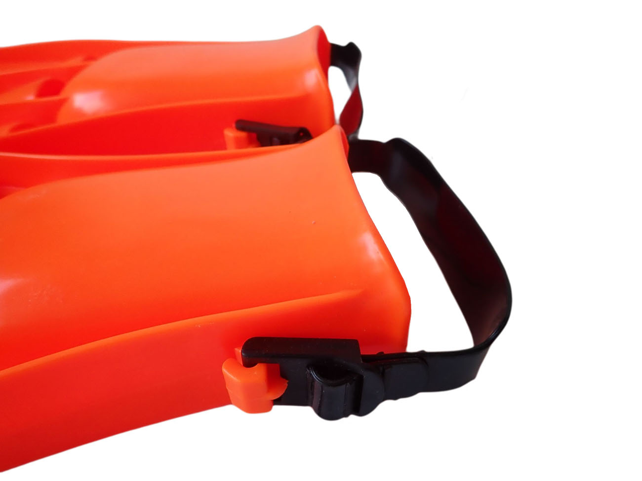 Bestway flippers large size 7 - 11 (41 - 46), universal size of flippers, leg size is regulated by a tightening strap. Durable packaging, available in orange.