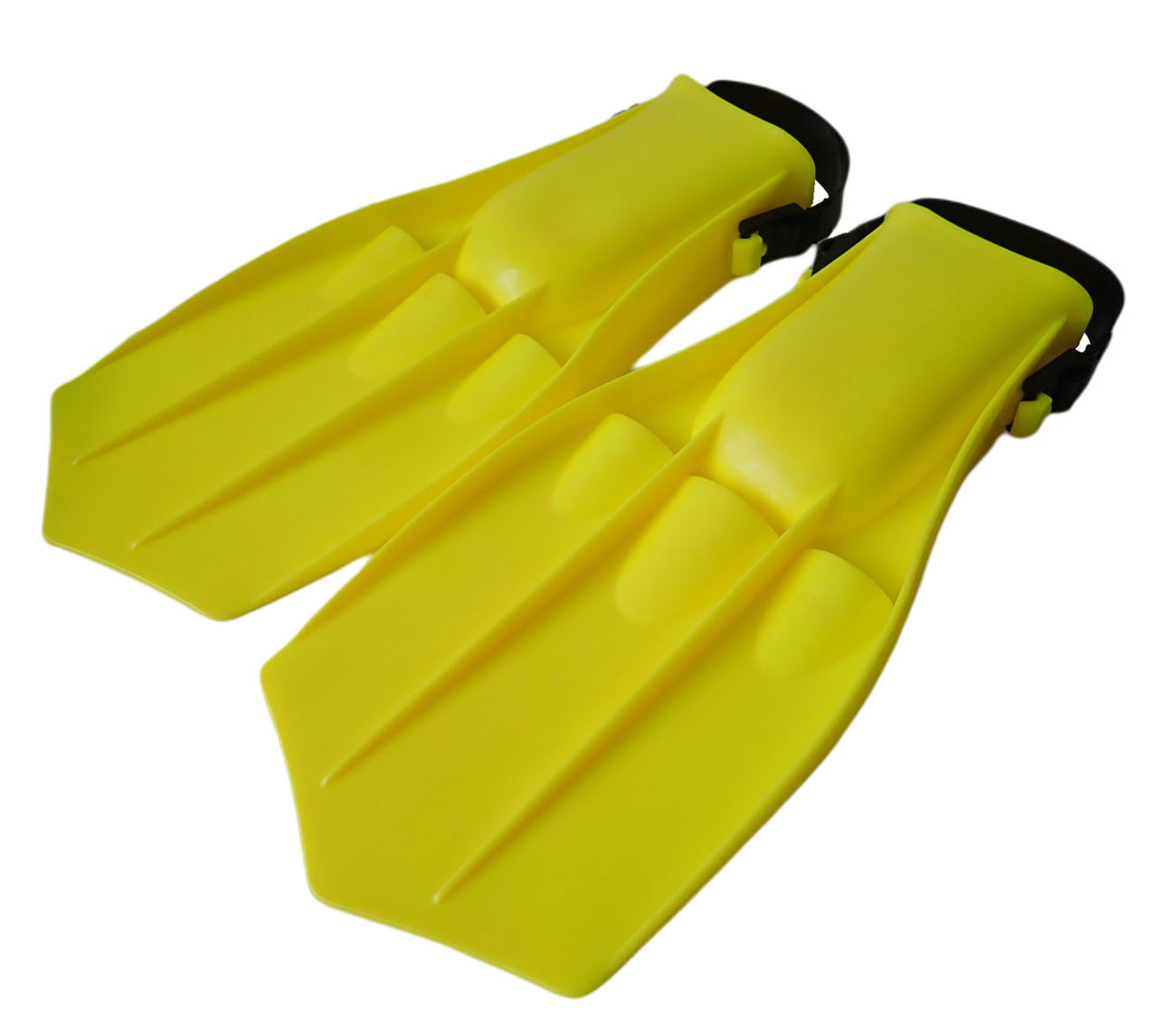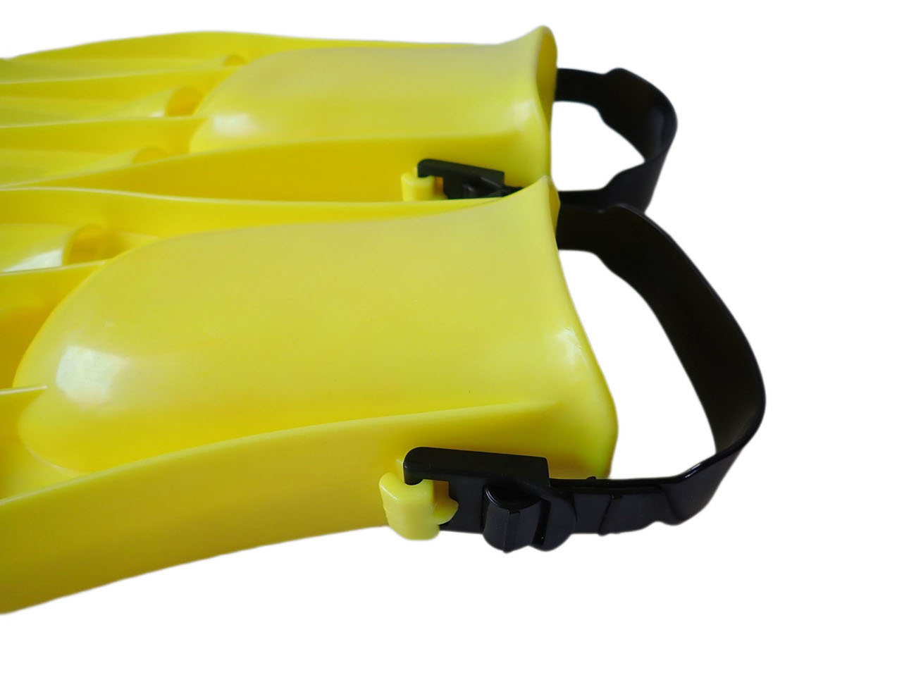 Bestway flippers large size 7 - 11 (41 - 46), universal size of flippers, leg size is regulated by a tightening strap. Durable packaging, different colours. Available in yellow.