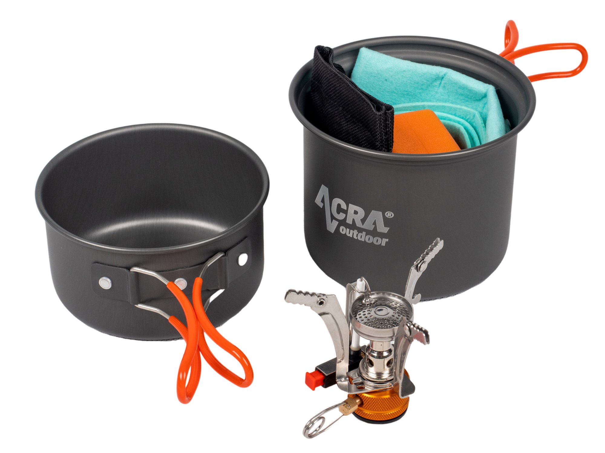 Acra C23 ultralight cookware set: camping set with gas cooker.