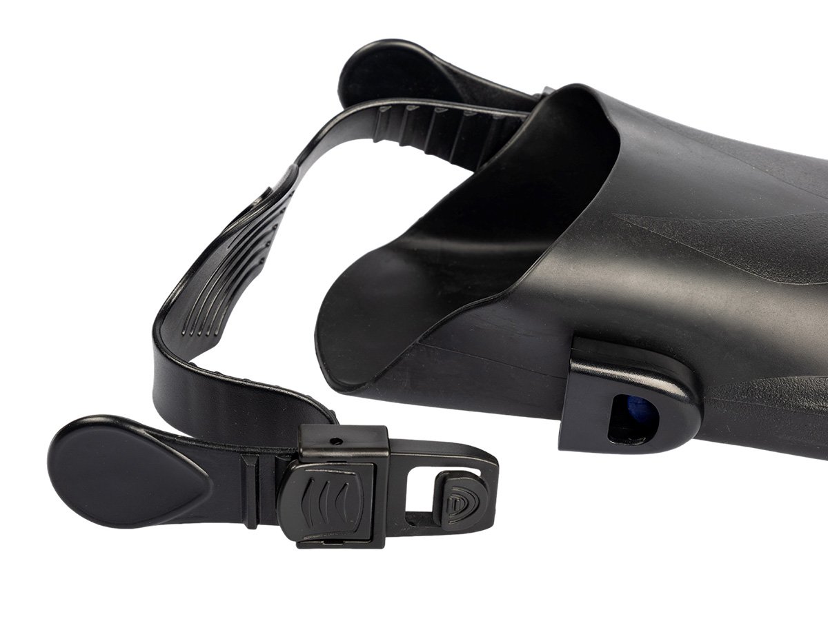 Rubber and anti-slip sole:The sole of the fins is firm and features large anti-slip inserts. This ensures not only complete protection of the foot, but also excellent power transfer between the foot and the fin for an efficient grip.