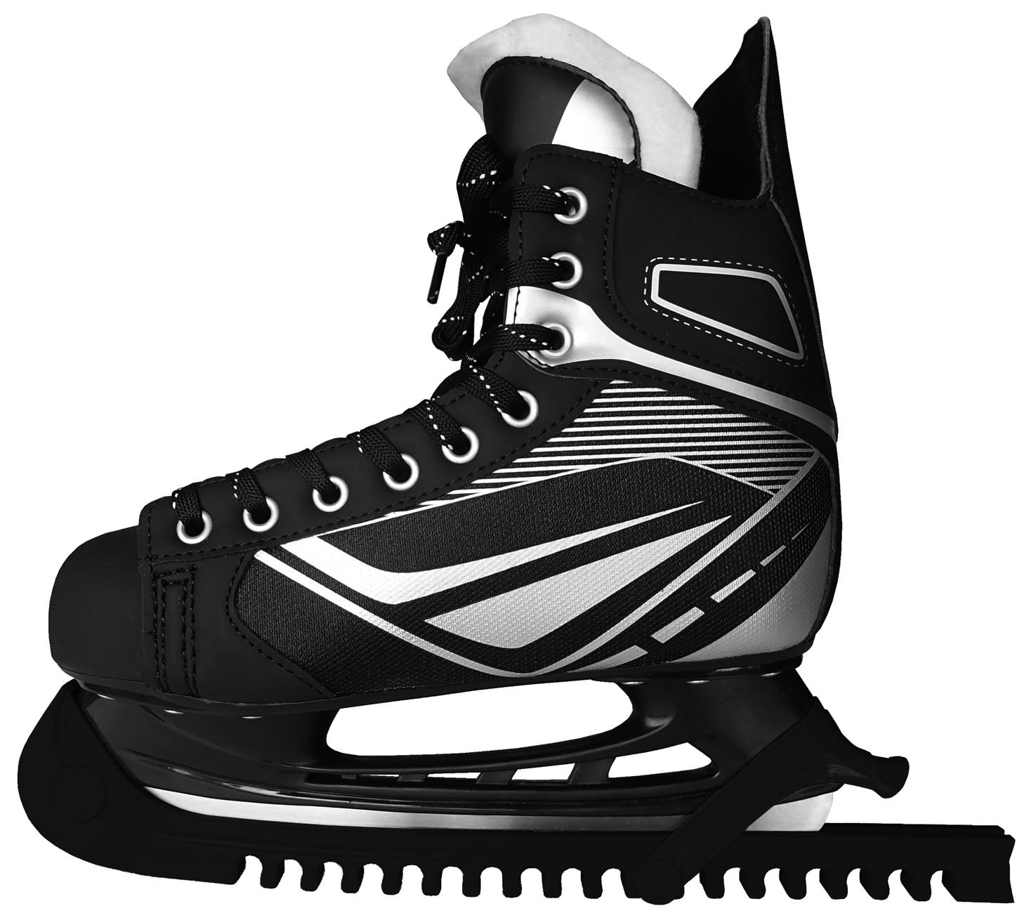 Plastic skate protectors - universal size, suitable for hockey skates and figure skates. The design of the skates is in black.