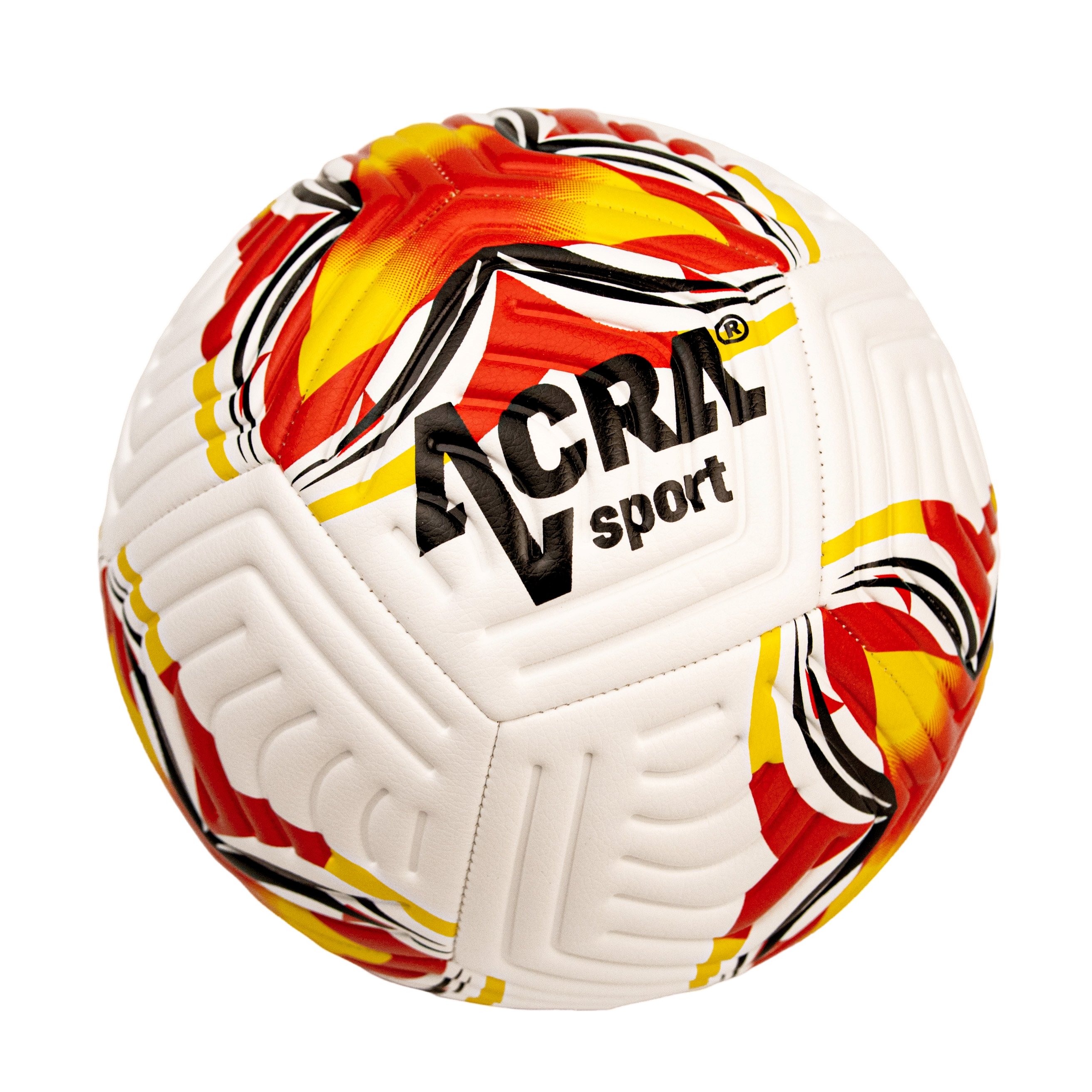 Acra Kicking Ball 07B - Size 5 - Machine Sewn for Optimal PlayTake to the field with the Acra Kicking Ball 07B in size 5! This machine-sewn ball is the perfect choice for practice, recreational play and matches, offering reliability and good performance. Its striking design with a white base and bold red and yellow details gives it a dynamic and modern look.