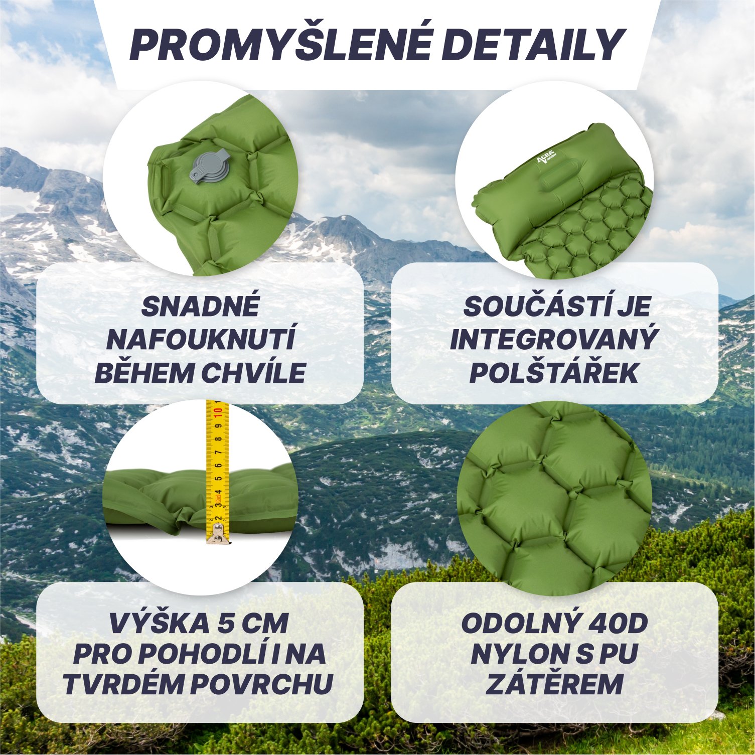 ACRA L140CL Inflatable Carrycot Green: Lightweight and compact companion for demanding hikers! Are you looking for a lightweight and compact hiking caravan that will keep you comfortable even on the most demanding trails? Then the ACRA L140CL green inflatable caravan is the right choice! Main Features: Lightweight and compact: the caravan easily packs down into a small 27 x 9 cm package and weighs just 570 g. Ideal for smaller backpacks and for those who appreciate light weight. Dimensions. Quick and easy inflation:The mattress can be easily inflated by mouth or with a large volume inflatable pump. Inflation takes only a few minutes. Thermal comfort: the R = 1.95 m2.K.W(-1) thermal resistance of the mattress will keep you comfortably warm even on colder nights.Resistant and durable: Made of high quality 40D nylon with PU coating, the karimat is tear and wear resistant. Compact Packing:The karma comes in a compact package that fits easily into a backpack. Carrying capacity up to 120 kg: The caravan is designed for people with a maximum weight of 120 kg.Colour: The caravan is available in a stylish green colour. ACRA L140CL Inflatable Caravan Green is the ideal choice for all discerning hikers, campers and cyclists who value compactness, light weight, quick inflation, maximum comfort and durability. Tip: For even more comfort, take a sleeping bag with you on your trip Important: DO NOT EXPOSE TO DIRECT SUNSHINE AND PROTECT FROM EXTREME TEMPERATURES!!!