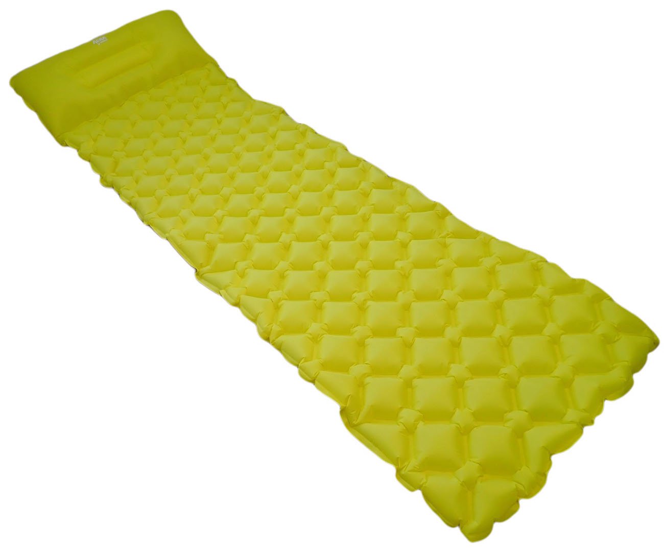 The inflatable air mattress with inflatable cushion is a very economical type of air mattress, which is designed for demanding hiking because of its consistency and light weight. Material used 400D nylon and PU coating inside. The mattress is 25 cm long when folded with a diameter of 9 cm and weighs around 450 g. Despite its light weight and small size, it is designed for comfortable lying thanks to the inflatable cushion and thanks to the inflatable chambers all over the area under the body. In preparation for sleeping or lying down, it inflates via a large valve with a membrane retaining the air inside the mattress. The mattress can be easily inflated by mouth or with a large volume pump for inflatable products - swimming pools, boats, etc.The thickness of the mattress is 5 cm, the size is 188 x 55 cm - the mattress has a rectangular shape. Compared to rubber-textile loungers, it has a great advantage in compliance and light weight. Compared to a conventional mattress, it has the advantage of comfortable lying and durability. The packaging of the mattress is very economical. The weight of the mattress is only 450 g. This is due to the system of reinforcing welds that allow the mattress to be lightened while maintaining comfort. Wearing capacity up to 120 kg. The mattress is in yellow. DO NOT EXPOSE TO DIRECT SUNSHINE AND PROTECT FROM EXTREME TEMPERATURES!!!