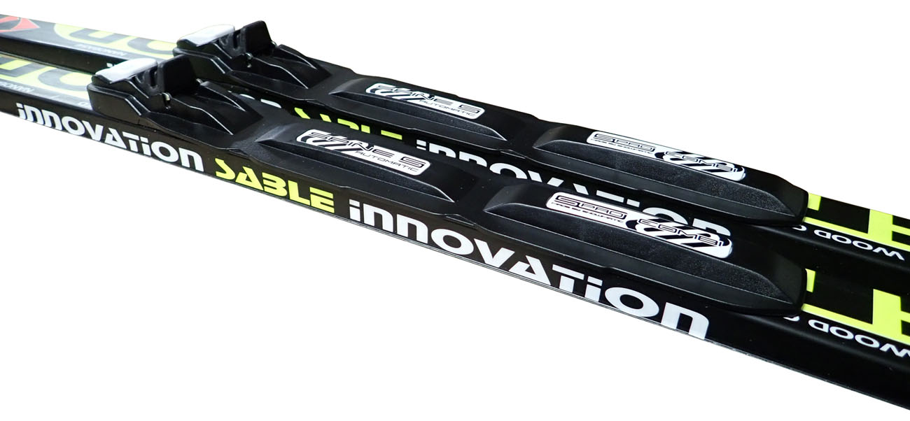 Quality cross-country skis Sable with wooden core and mounted Salomon bindings. This is a recreational ski model with a width of 45 mm.
