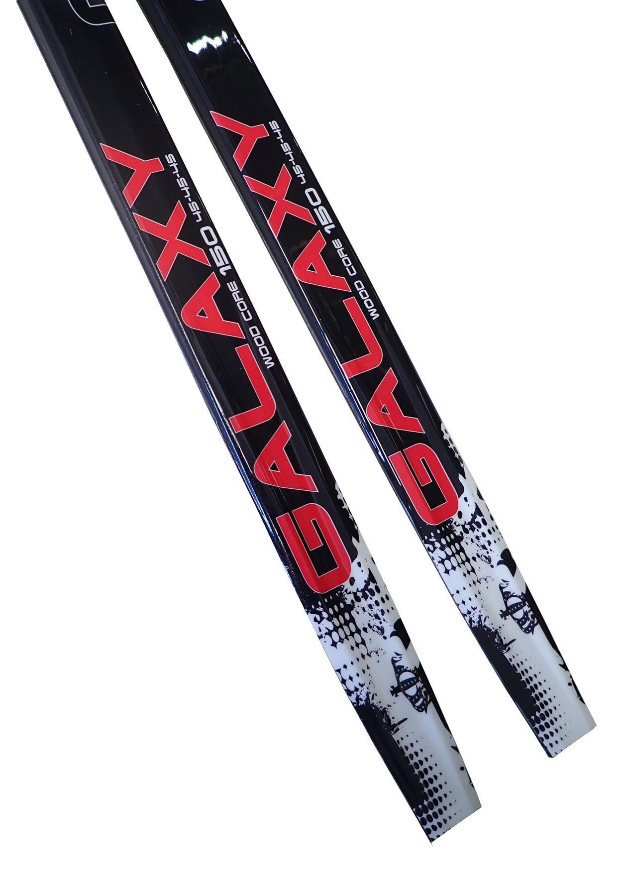Cross-country skis with a wooden core, molded from several layers, suitable for track and unpaved terrain. CAP upper construction made of ABS type plastic.
