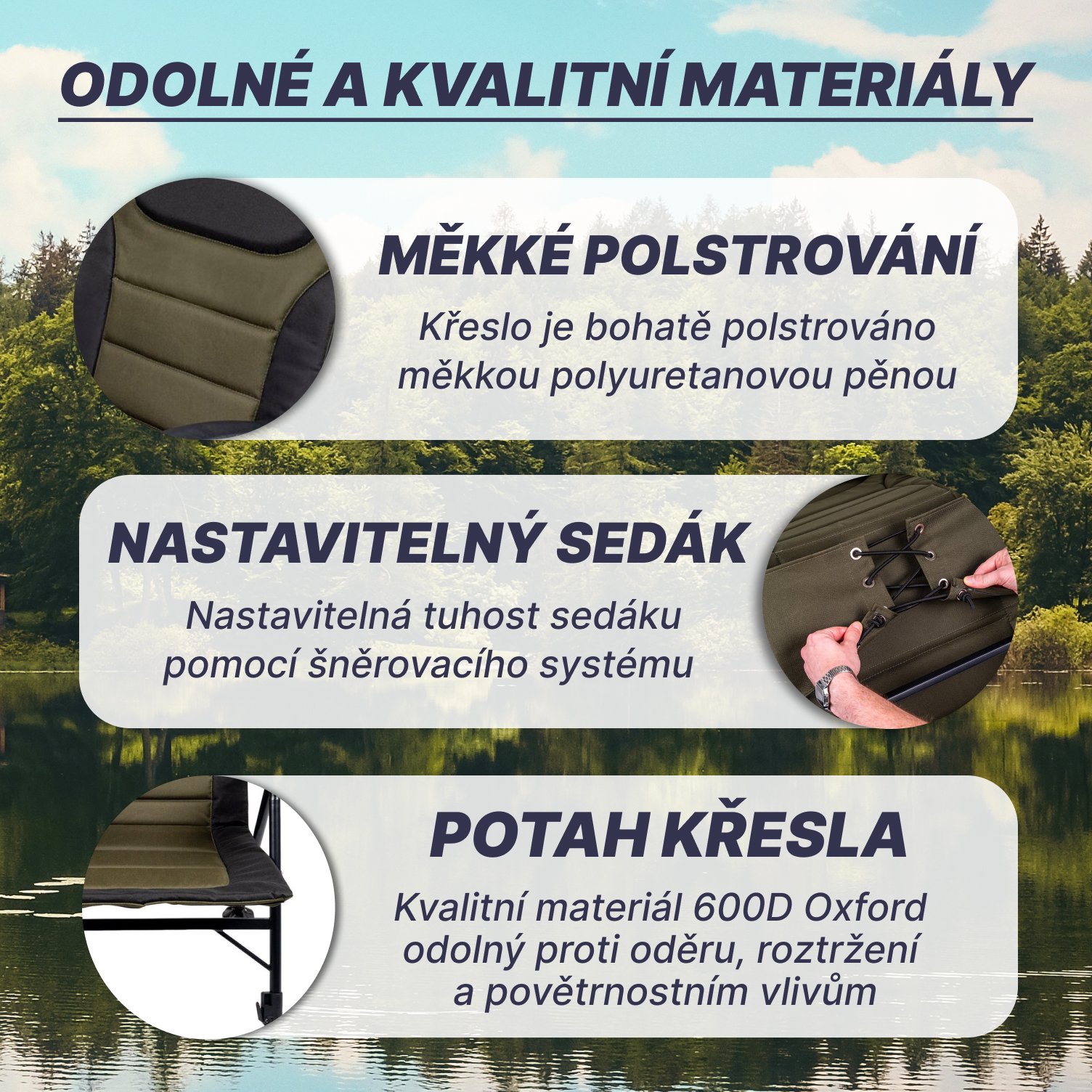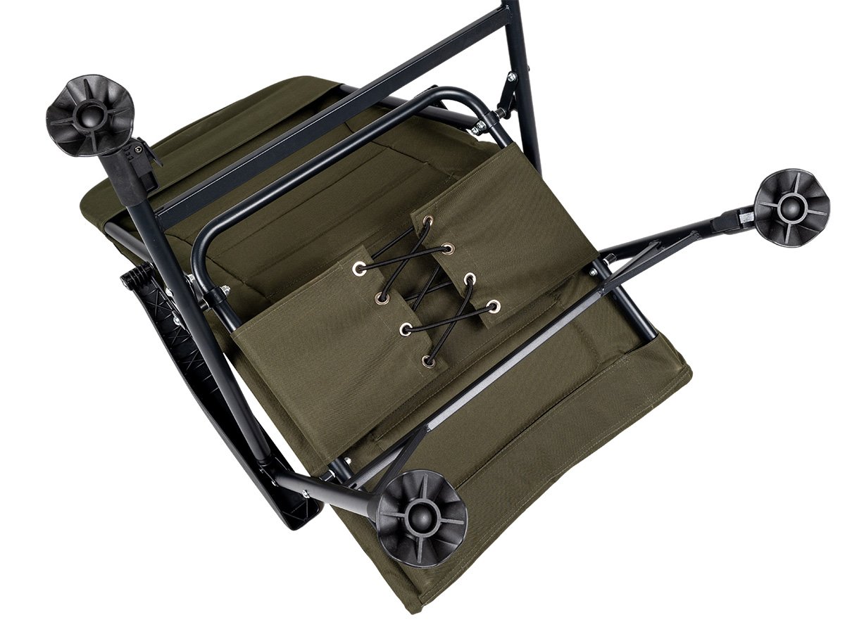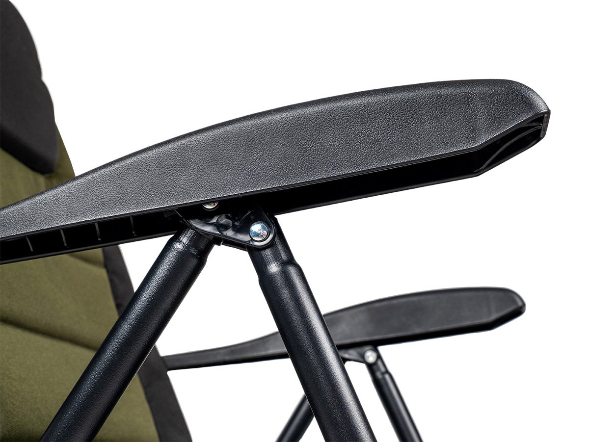 Luxury comfort with padding: Forget about uncomfortable seating! The chair is generously padded with soft polyurethane foam to ensure maximum comfort even when sitting for long periods. Whether you want to take a nap, read a book, watch a float while fishing or just relax, this chair will surround you with comfort.Long and stable construction: The frame of the chair is made of lightweight but strong steel, which guarantees its high stability and load-bearing capacity. Despite its sturdiness, it maintains a reasonable weight of 6.3 kg, making it easy to handle and transport. The large feet on the legs ensure stability on different types of terrain, whether you are by the water, on uneven ground at the campsite or on the shore of a pond.Ergonomic design with armrests: Comfortable armrests made of PP material provide optimal support for the arms and shoulders, which further enhances seating comfort. The chair is designed to best support your body even during long hours of waiting for a shot.Durable material for long life: The chair cover is made of high quality 600D Oxford material in a sleek green colour. This material is known for its resistance to abrasion, tearing and weathering, ensuring the chair's longevity even with frequent use in harsh conditions by the water or at the campsite.Spacious and practical: The unfolded dimensions of 68 x 68 x 100 cm provide ample space for comfortable adult seating.Easy to transport and store: The chair comes with a handy carrying case that makes it easy to carry and store, whether you're going fishing, camping or just out in the garden.