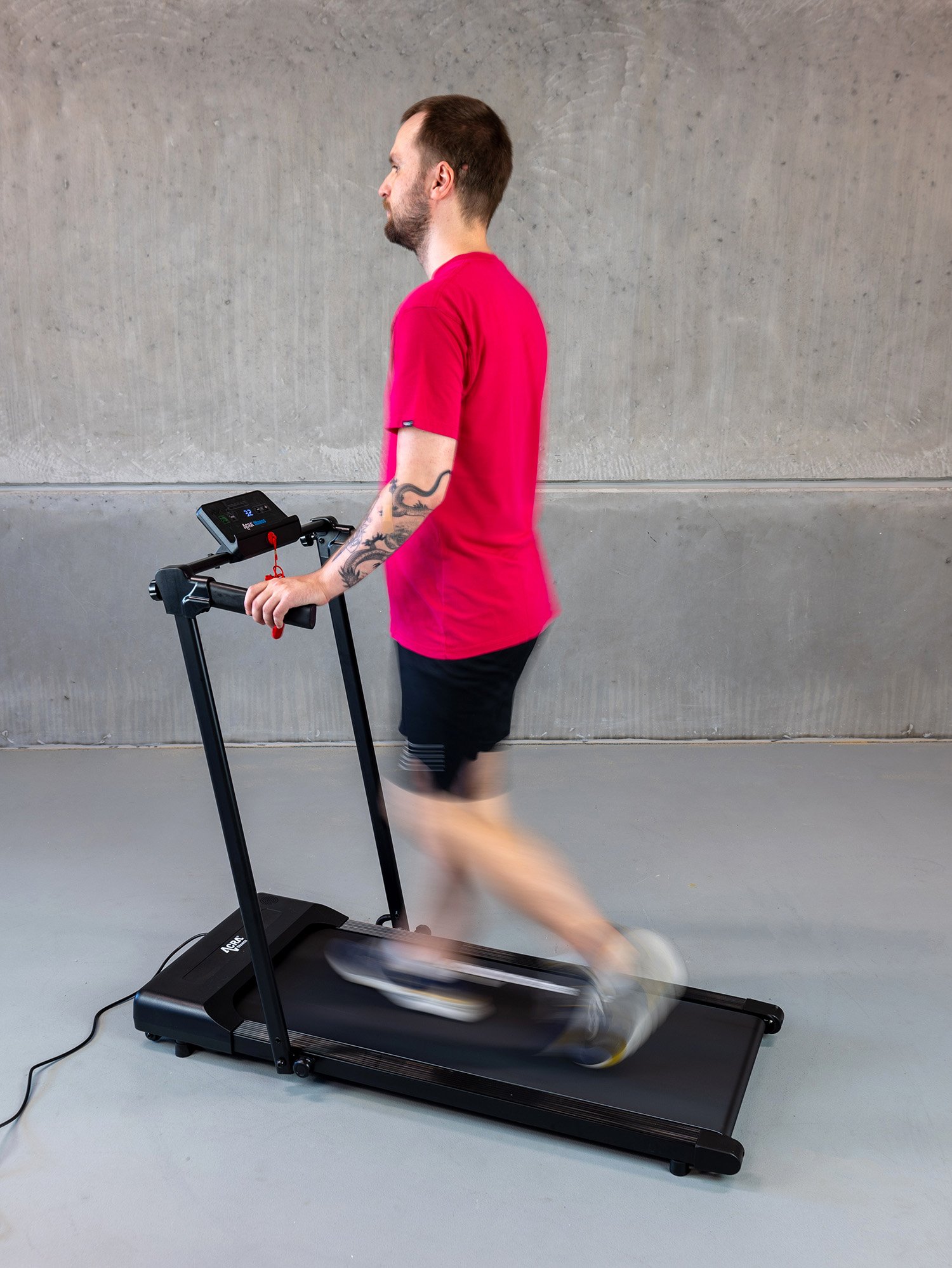 Drive: The belt is powered by a 0.75 HP electric motor. The average power consumption under normal operating conditions, with a weight between 70 - 80 kg and with regular maintenance, is approximately 0.8 kW/ 1 hour.