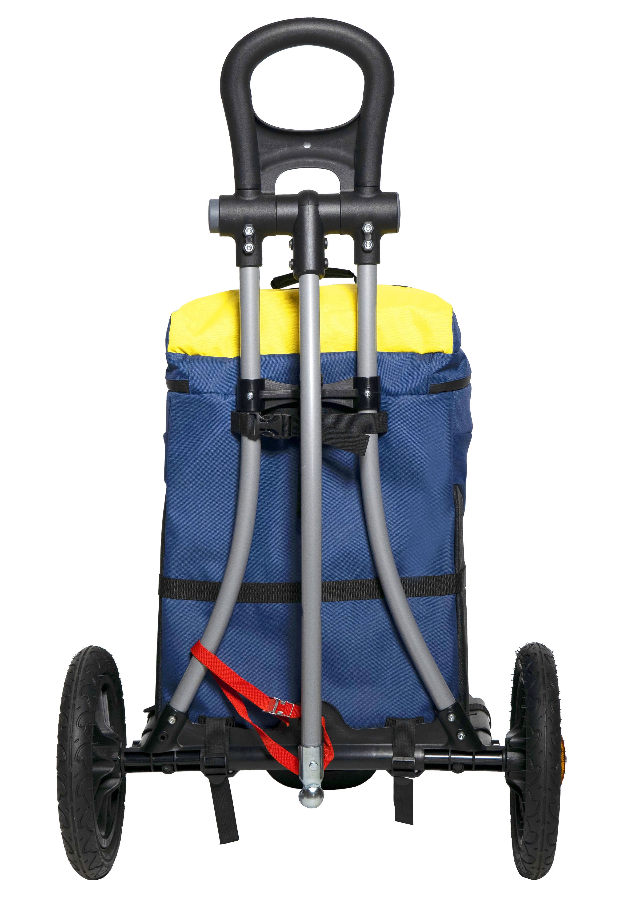 Bellelli B-Tourist is a practical and versatile trolley that can be attached to a bicycle, but also easily pulled by hand using the ergonomic handle.