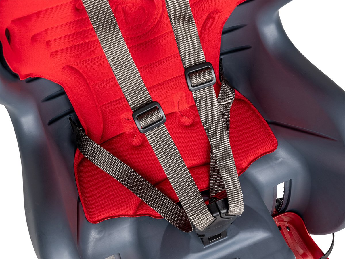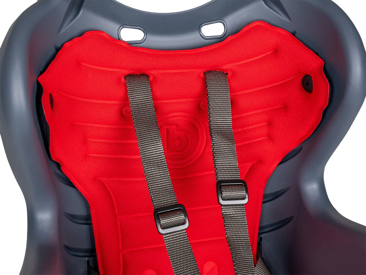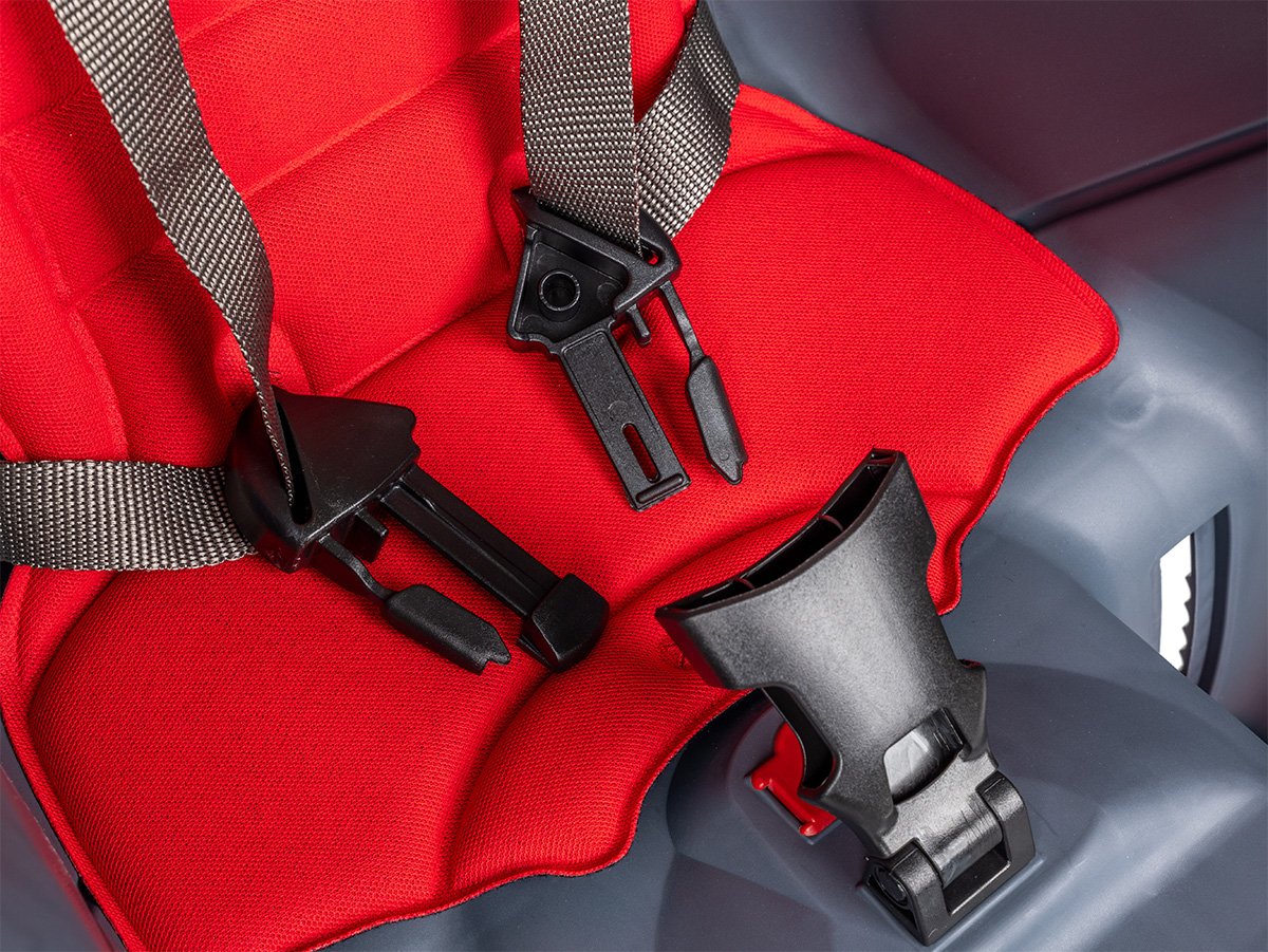 Safety 5-point belt and additional anti-slip strap from the carrier (attachment to the seat tube)