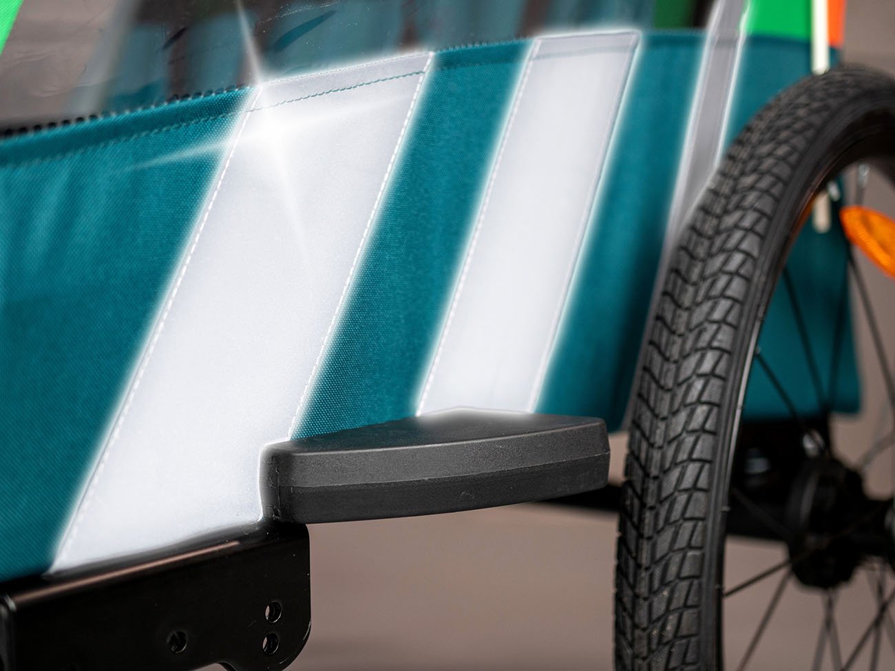 reflective elements around the trolley, coloured warning flag - on a 150 cm long bar, reflectors at the front and rear of the trolley