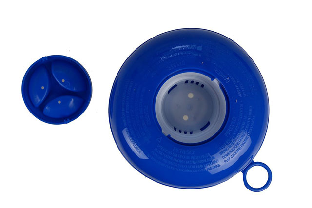 Swimming pool float for 2,5cm tablets. Holds one tablet. Possibility to adjust the rate of chemical release by turning the cap at the top of the float.