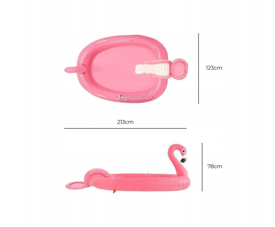 Looking for the perfect way to keep your little ones cool in the summer? Then Sun Club's Flamingo Children's Pool is the perfect choice for you! Featuring a colourful flamingo design, slide and fountain, this pool will guarantee hours of fun and water frolics for your kids. Features:Slide.Durable Material:Made of high quality PVC that is extremely durable and can withstand even rough treatment.Easy Inflation:The pool is ready to use in minutes, so your kids will enjoy water fun without waiting.Compact packaging: the small package size makes the pool easy to store and transport.Additional fun: 5 colorful plastic balls are included to encourage your children's play and imagination.Versatile use: after the summer season is over, the pool can serve as a play area with plastic balls.Technical Specifications: Dimensions after inflation: 213 x 123 x 78 cm (length x width x height)Capacity: 112 L when filled to 75%Package dimensions: 37 x 10 x 27 cm (width x height x depth)Weight: approx. 2.226 kgMaterial: PVC, 0.30 mm thickConnector for garden hose: Yes, 1 pieceSpecial equipment: coloured PVC balls x 5 piecesSuitable for children: 2-6 yearsUser weight: 15-30 kgThe Flamingo children's pool is a guarantee of fun and refreshment for the whole family. Thanks to its attractive design, durable construction and rich equipment, it will become a favorite place for your children's summer fun.