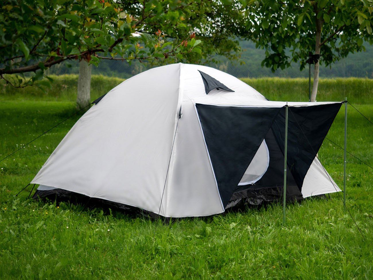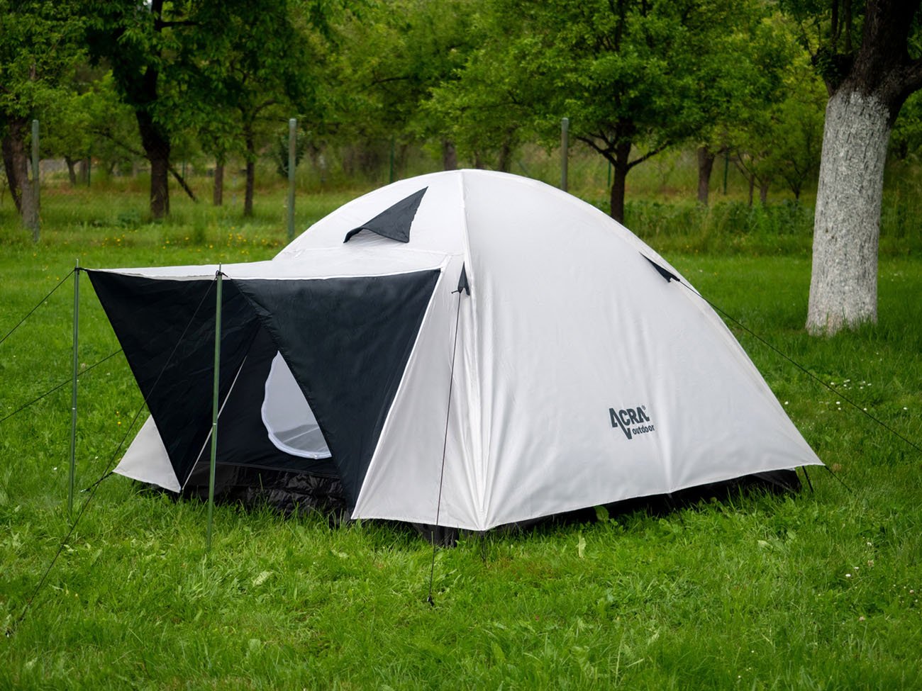 Family tent for 3 - 4 persons - double dome (suspended bedroom and separate top shell) with a canopy over the entrance with excellent rainproof properties - high durability of the top shell, flooring and taped seams create interesting conditions for the use of the tent for families with children with the possibility of longer use in campsites.