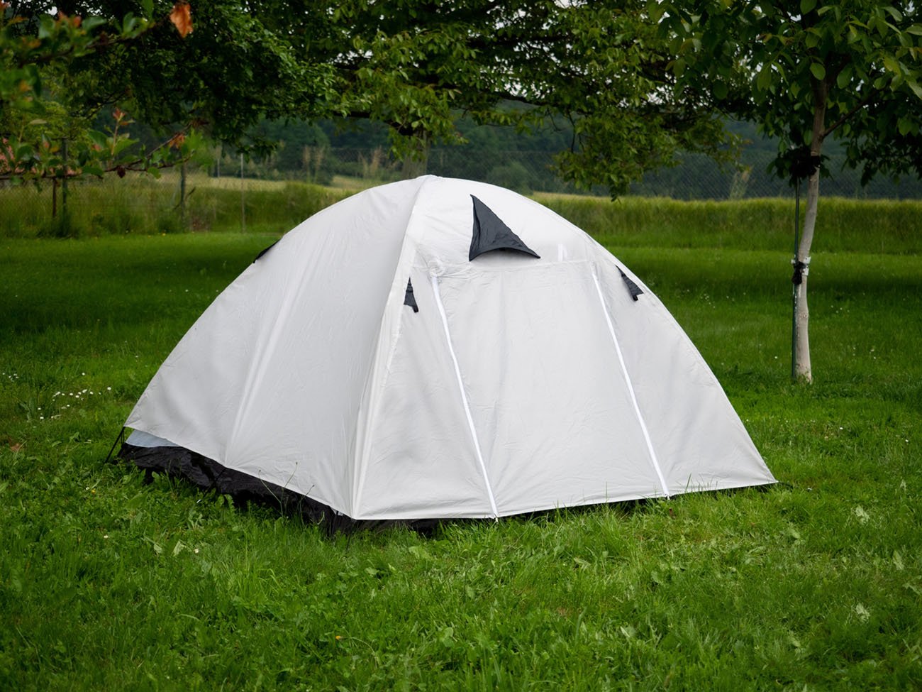 The tent is designed for 3 - 4 people. The equipment includes steel stakes and clamping cords.