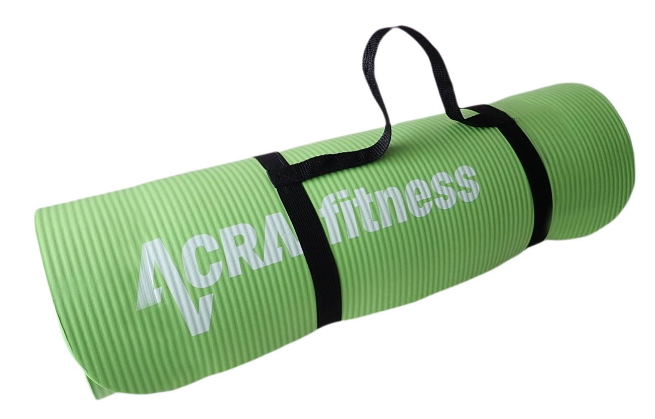 NBR Yoga Mat - soft comfortable exercise mat in green color is made of quality rubber material (NBR) coated with non-slip surface on both sides. This guarantees comfortable exercise while guaranteeing health safety. The high-quality NBR Yoga Mat (NBR is a technical brand of refined synthetic rubber that does not cause any allergic reactions in contact with the skin) has a wide range of uses. The mat is used for various fitness and other exercises. It is a soft material very pleasant to the touch, but at the same time the mat also has anti-slip properties on both sides, the top side also has a textured surface to make exercise even easier and more enjoyable. NBR Yoga Mat also features a protective function, where the soft flexible layer of material prevents the possibility of minor injuries including blisters, abrasions. Therefore, the mats are also suitable for exercises where shock absorption is needed. The pad is recommended for fitness exercises of all kinds, for yoga and stretching and also as a physiotherapy aid. The mat is equipped with fastening straps for easy handling. Another possible use of the mat is for camping as a more perfect replacement for classic foam hiking mats. The NBR Yoga Mat has excellent insulating properties to keep you from getting cold.