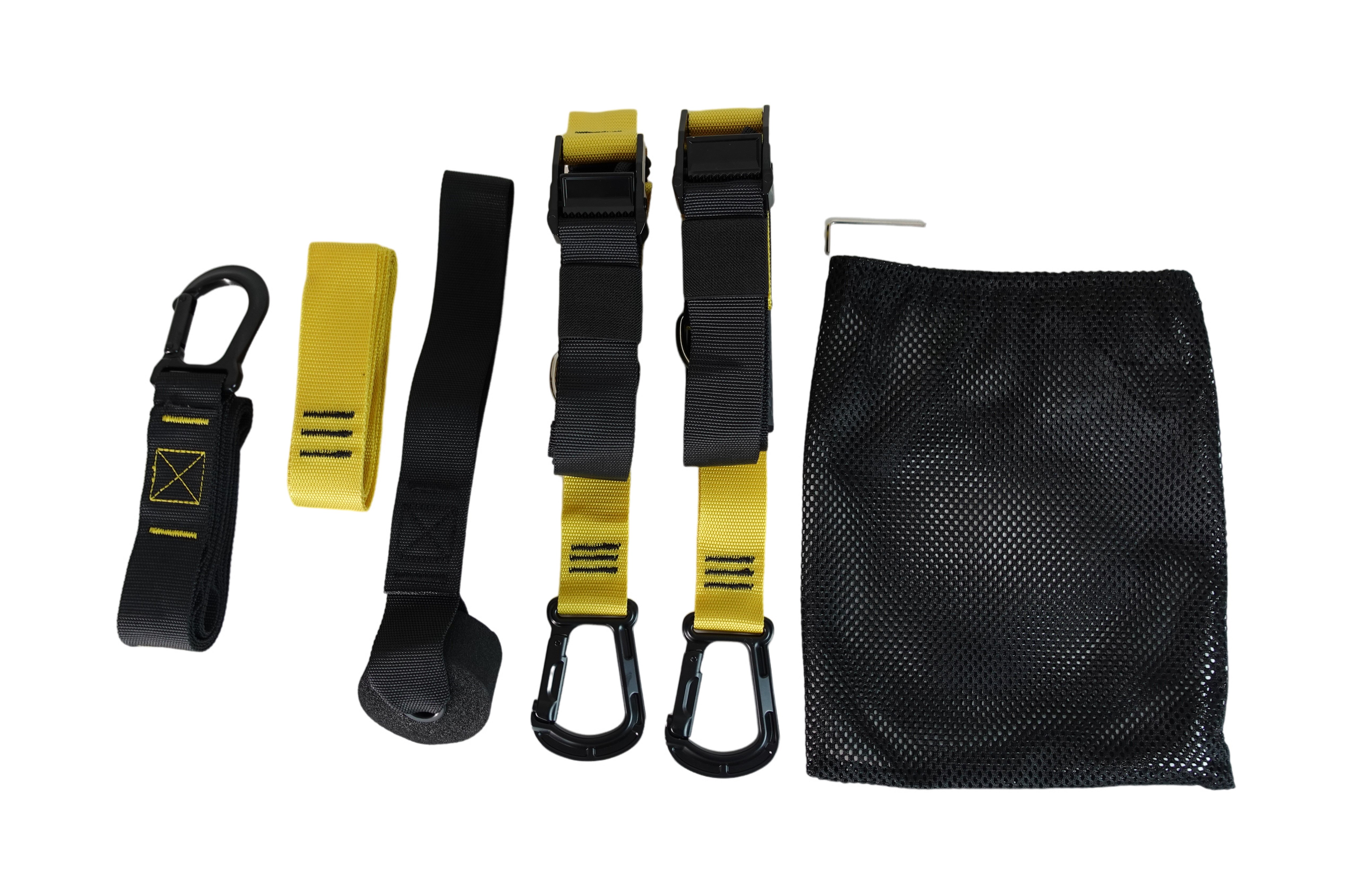 Extension strap with carabiner: This strap allows you to add length to the basic straps.
