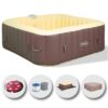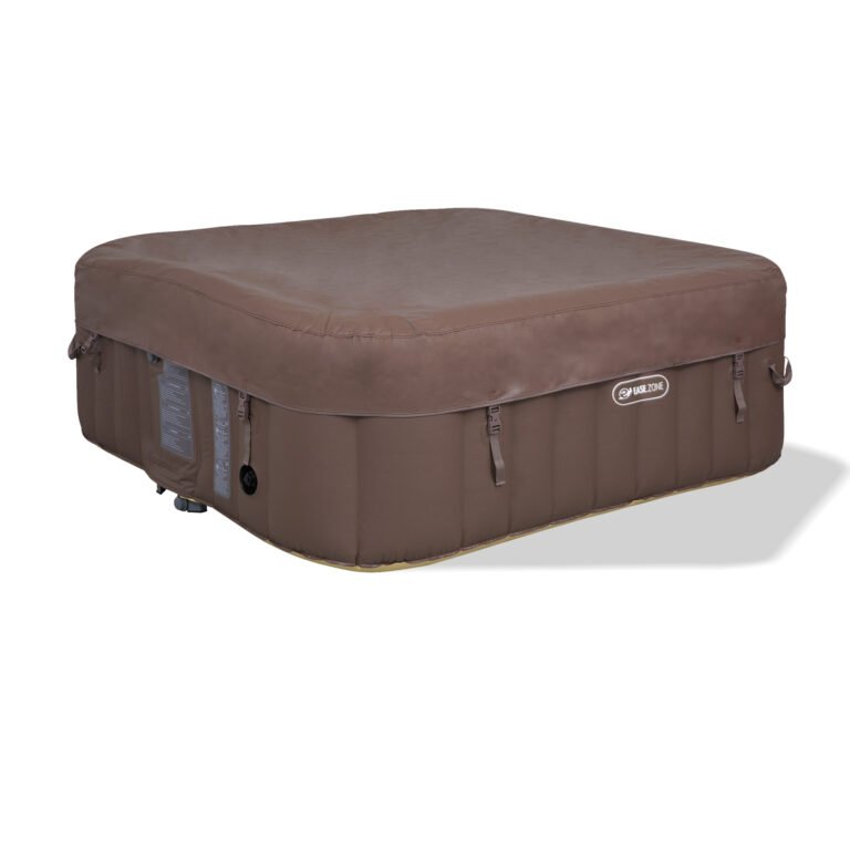 The EASE.ZONE square whirlpool bath with 4-6 seats assembles without external tools and is ready to use in a few simple steps. All functions can be activated from the control panel mounted on the edge of the tub.After connecting the supplied corrugated hose to the integrated pump, simply start the inflation using the control panel and stop it once the tub has taken the correct shape. Always take care not to over-inflate the SPA tub.